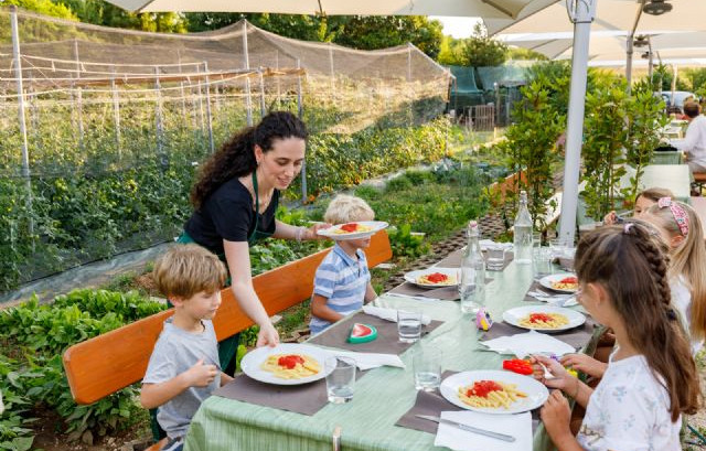L’Agri-ristorante, aperto dalle 10:00 alle 20:00, propone piatti tipici della zona con ingredienti genuini a km0.