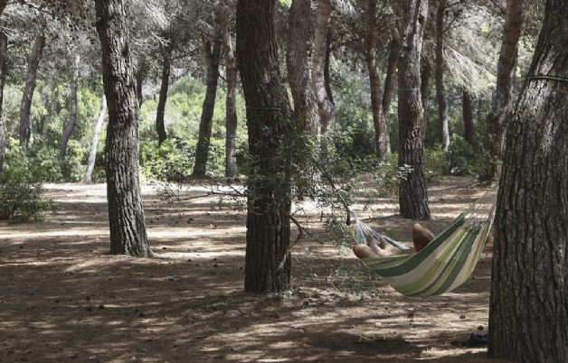 Posizionata tra i due laghi Alimini e immersa nella campagna, l'ampia area sosta con accesso diretto (attraverso la pineta di circa 500 m) alla spiaggia della Baia dei Turchi, dispone di piazzole su erba, ombreggiate e con allacciamento elettrico da 4A.