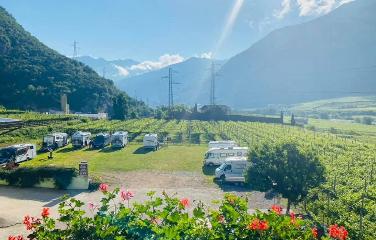 A 200 m dall'uscita dell'A22 Ala-Avio, a 2,5 km dal centro, la struttura immersa tra i vigneti dispone di camere e di un'area attrezzata camper, livellata e illuminata, con 25 posti e 16 allacci elettrici.