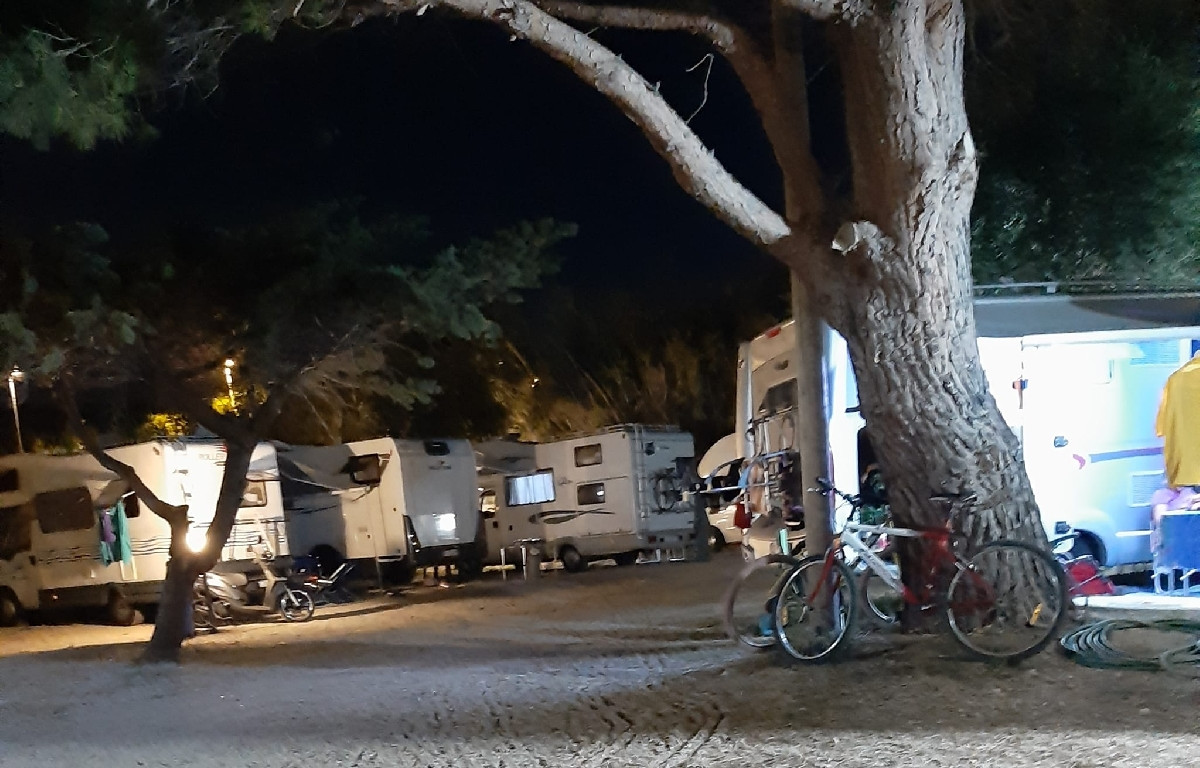 Presenti: zona carico acqua e scarico acque grigie e cassetta WC chimico, servizi igienici, docce calde e fredde, uso lavatrice a pagamento, lavelli per stoviglie e indumenti.