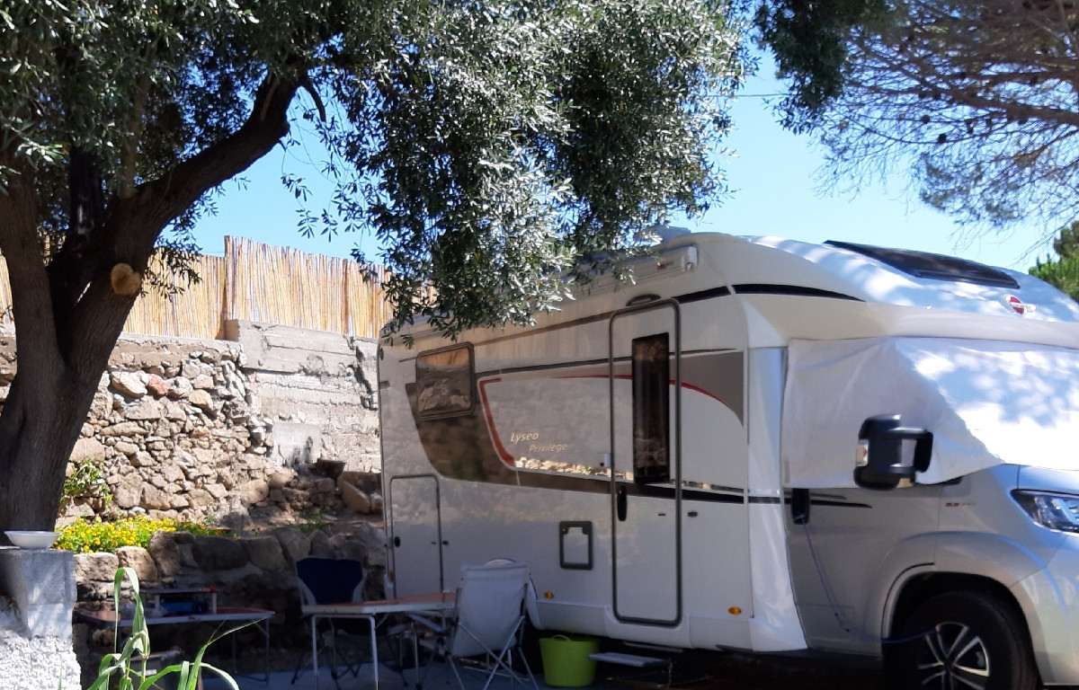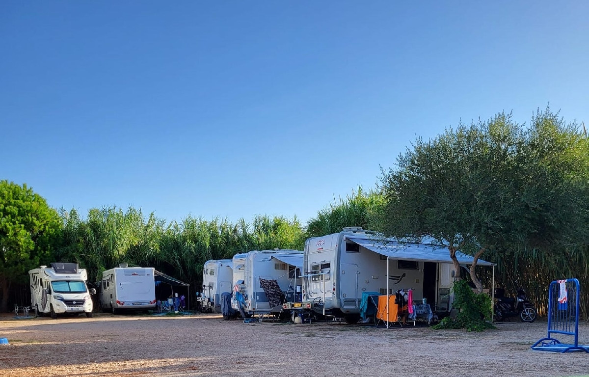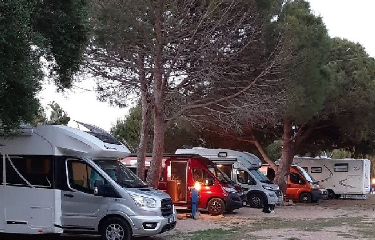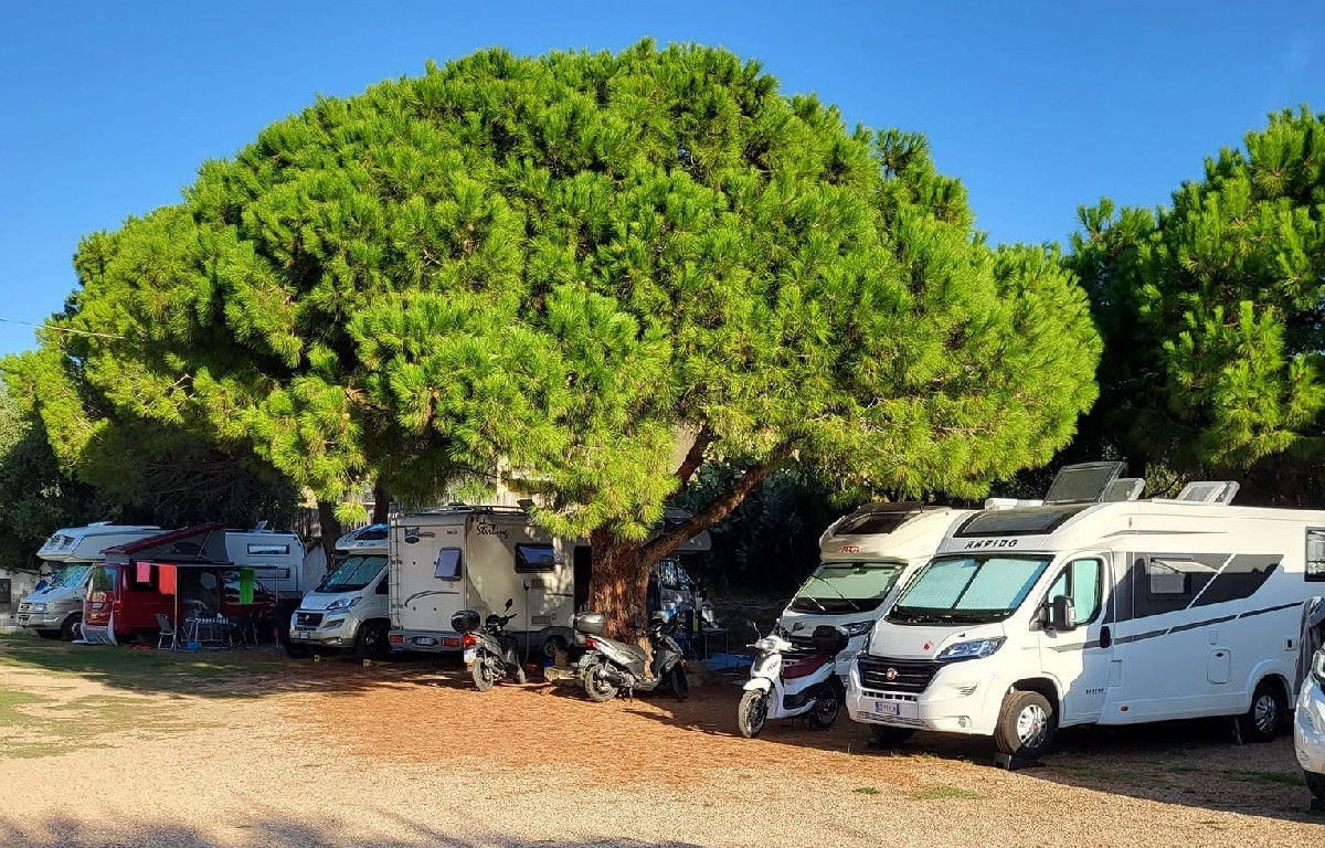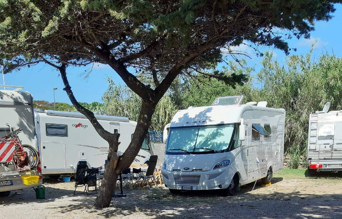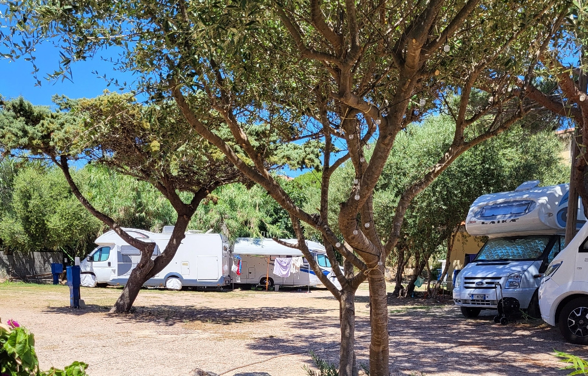 Vicino all'Isola di Caprera, area con circa 20 piazzole su fondo in ghiaia, alcune ombreggiate, dotate di allacciamento elettrico.
