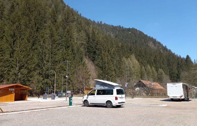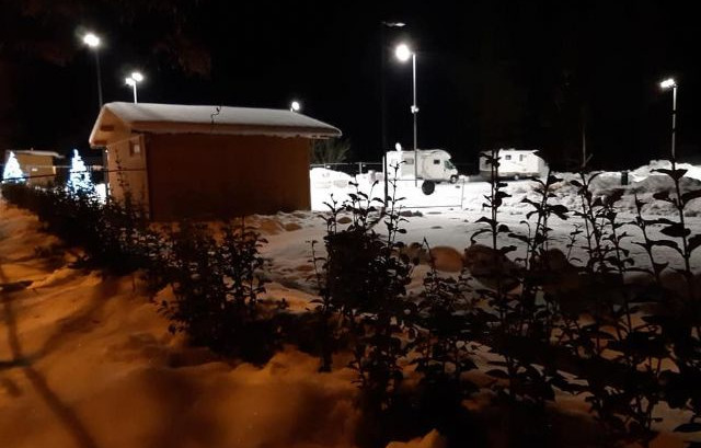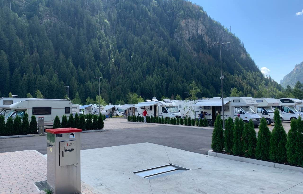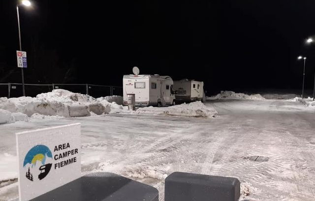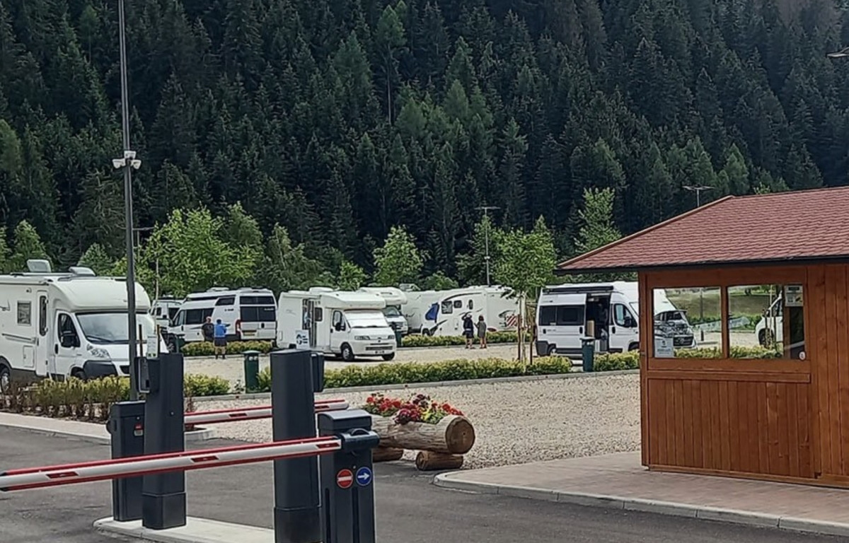 Dispone di 70 ampie piazzole per l'apertura del tendalino, allacciamento elettrico da 16A, camper service WC-Wash, lavelli per stoviglie, distributori automatici di snack e bevande calde e fredde.Di fronte all'area si trova la fermata di autobus, ski bus e navetta per il centro e per gli impianti di risalita, mentre la stazione degli autobus è a circa 300 metri.Non vengono gestite le prenotazioni e le convenzioni. Le caravan non sono ammesse.