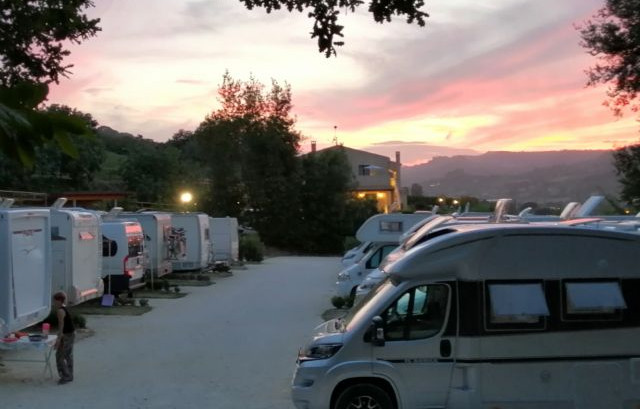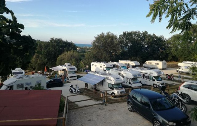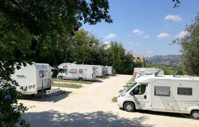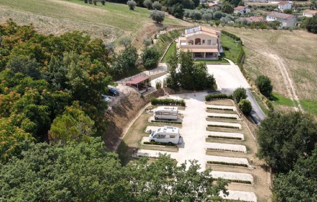 A 1,5 km dal mare e immersa tra le colline marchigiane, l'area sosta all'interno del B&B Casal Farano dispone di 17 piazzole di 38 mq su stabilizzato ed erba, colonnine elettriche e possibilità di apertura tendalino su prato.