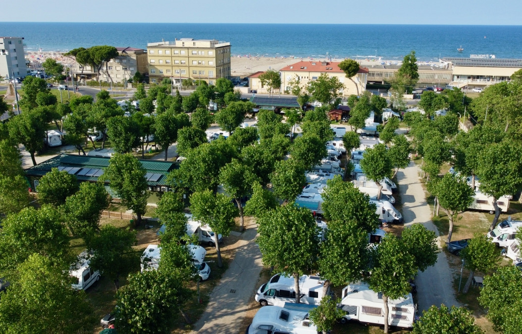 A 1 km dal centro e a 50 m dalla spiaggia libera e attrezzata, di fronte a Rimini Terme, area attrezzata videosorvegliata, ombreggiata, dotata di piazzole su erba di varie dimensioni: standard da 7,5 x 5 m, large da 12 x 5 m e 5 maxi da 168 mq per i veicoli XXL.