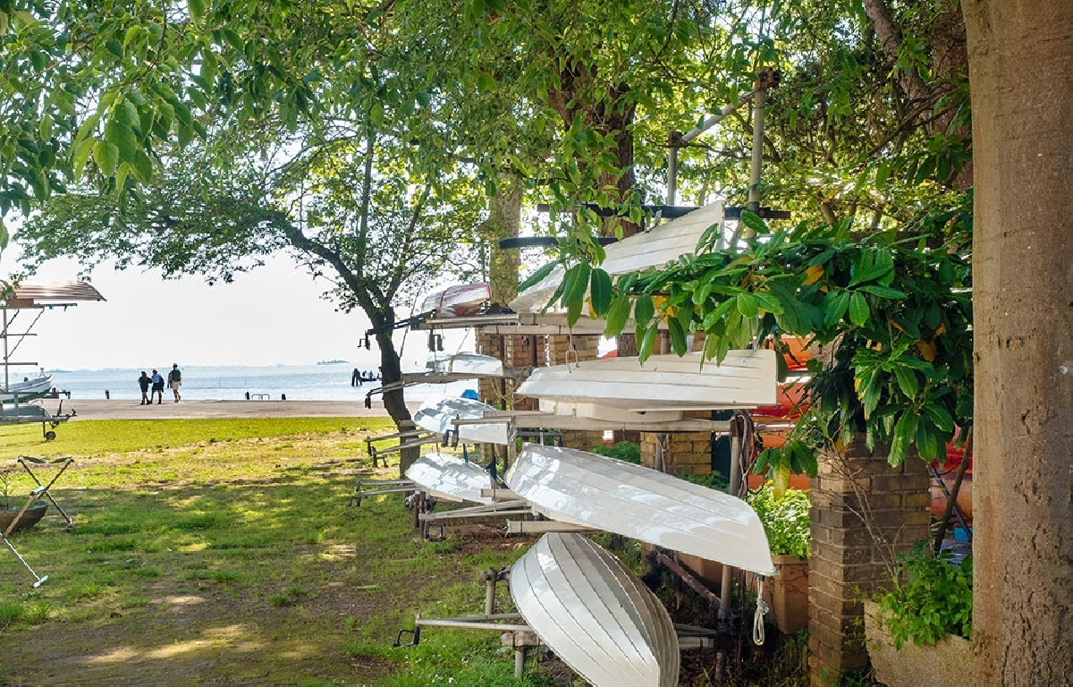 Fermata bus a 1 km (biglietti presso bar del parco) e a pochi metri servizio di collegamento con il centro storico con navetta via mare.