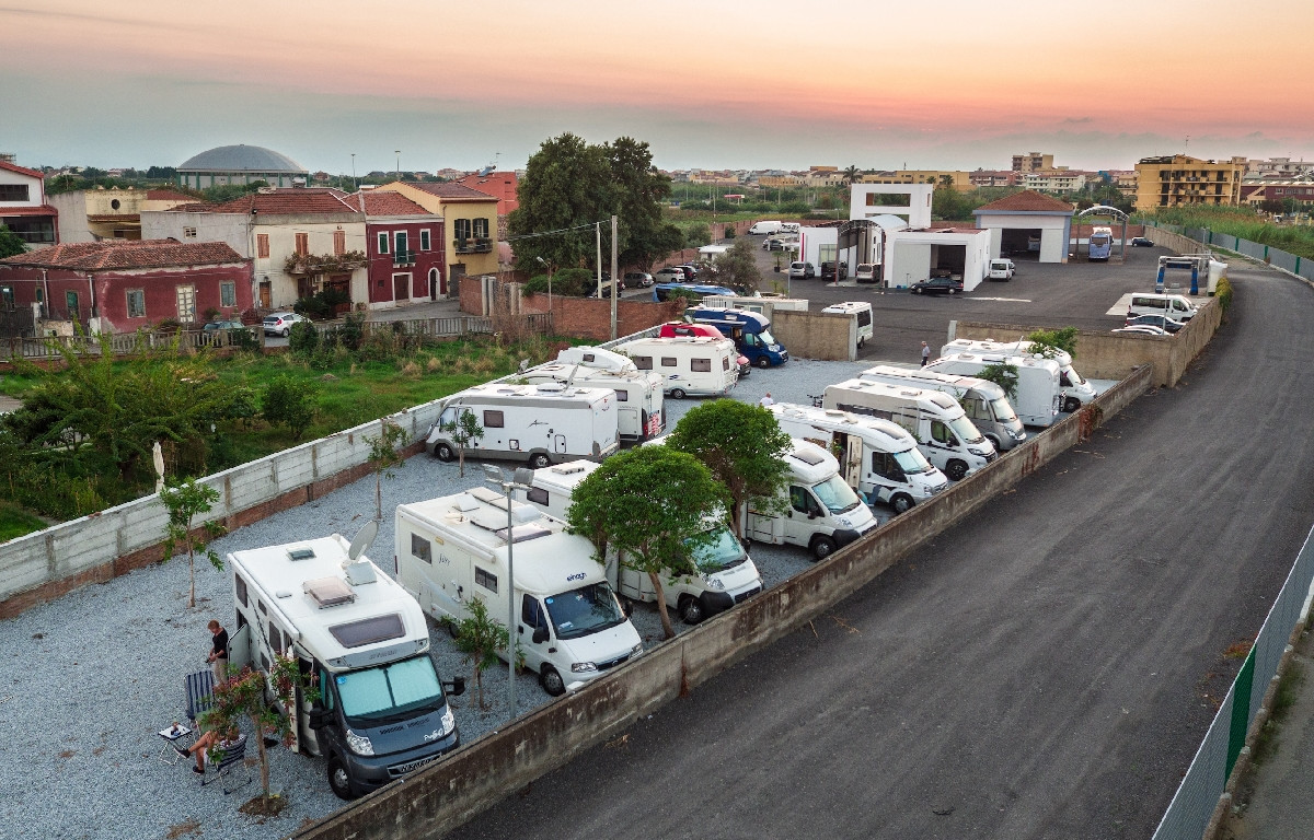 A circa 1 km dal centro e a meno di 500 m dal porto di Milazzo per l’imbarco per le Isole Eolie, l'area camper attrezzata, video sorvegliata e con personale in loco dispone di stalli con allaccio elettrico, WC completi di box docce con ingresso libero, carico e scarico acque, servizio navetta su richiesta per raggiungere gli imbarchi.