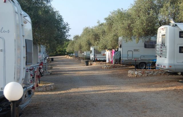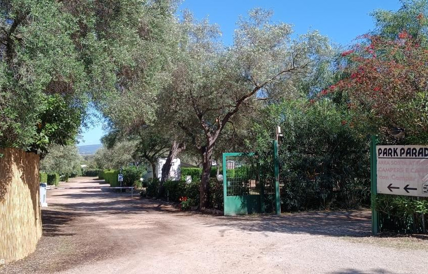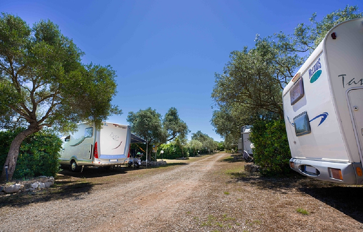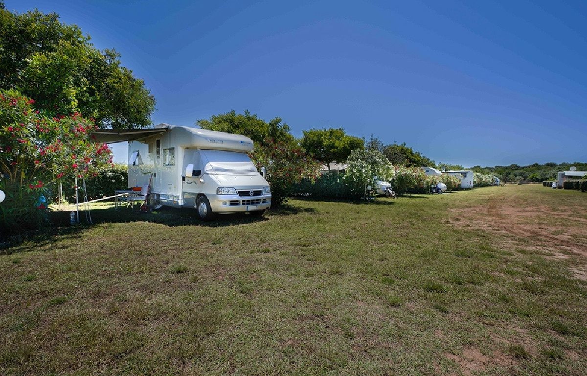 Lungo la strada per Capo Caccia, a 700 m dalla spiaggia Le Bombarde, area attrezzata, recintata, parzialmente ombreggiata con circa 100 piazzole delimitate, servite da colonnine idriche ed elettriche.