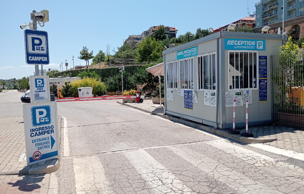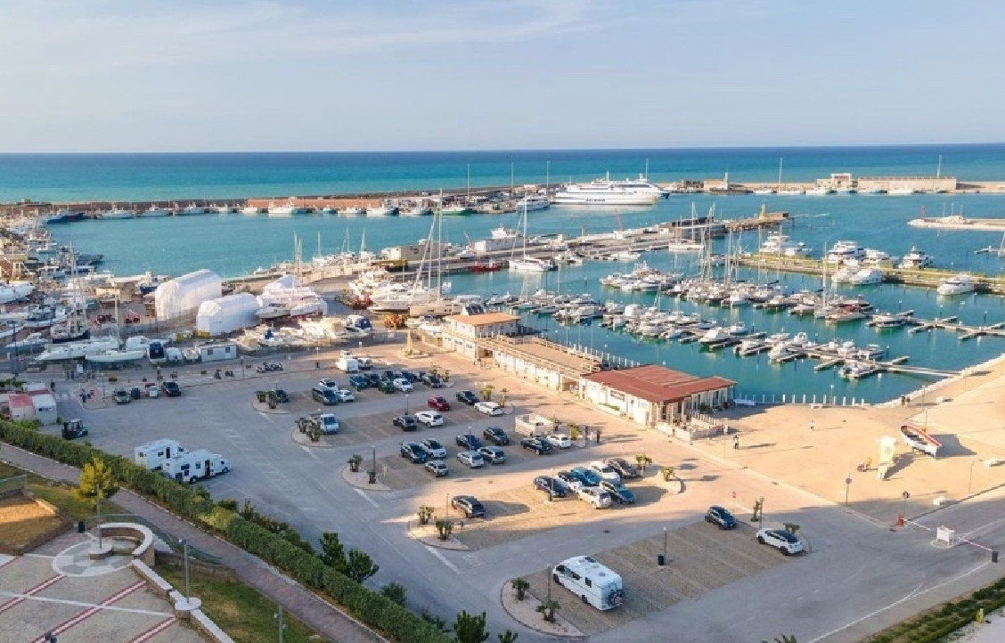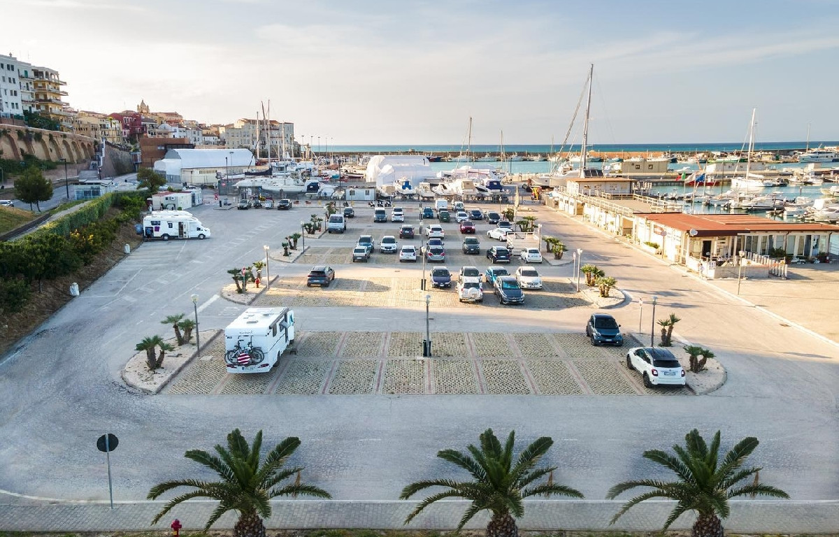 A 200 m dal centro e a 400 m dall'imbarco per le Isole Tremiti, dentro il parcheggio del porto Turistico e adiacente al parcheggio auto, area camper presidiata, a pagamento, con piazzole fronte mare su prato, non ombreggiate.