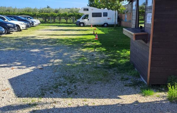A circa 5 km dal borgo medievale, parcheggio camper a pagamento, videosorvegliato e illuminato, con stalli serviti da allaccio idrico ed elettrico.