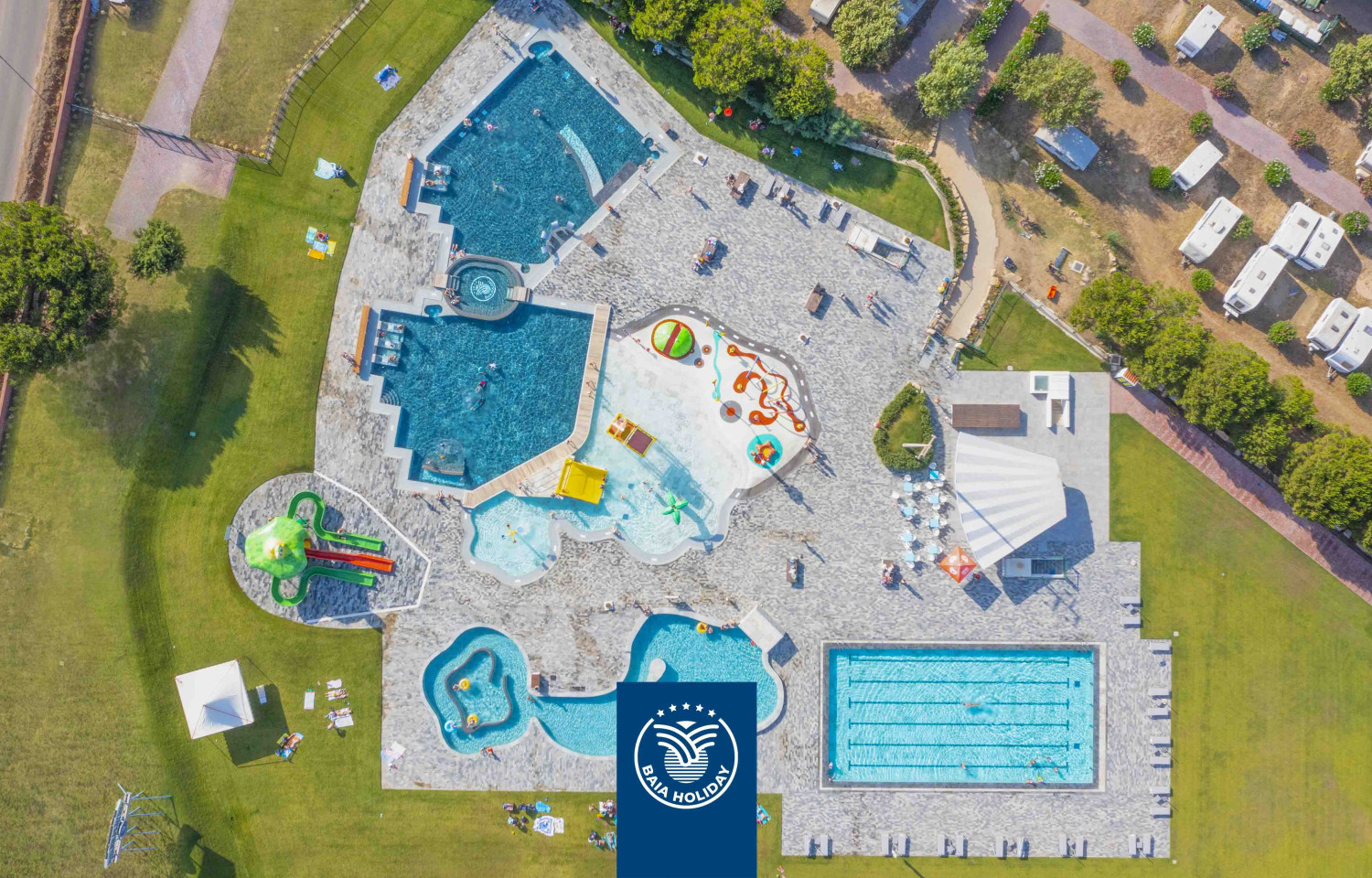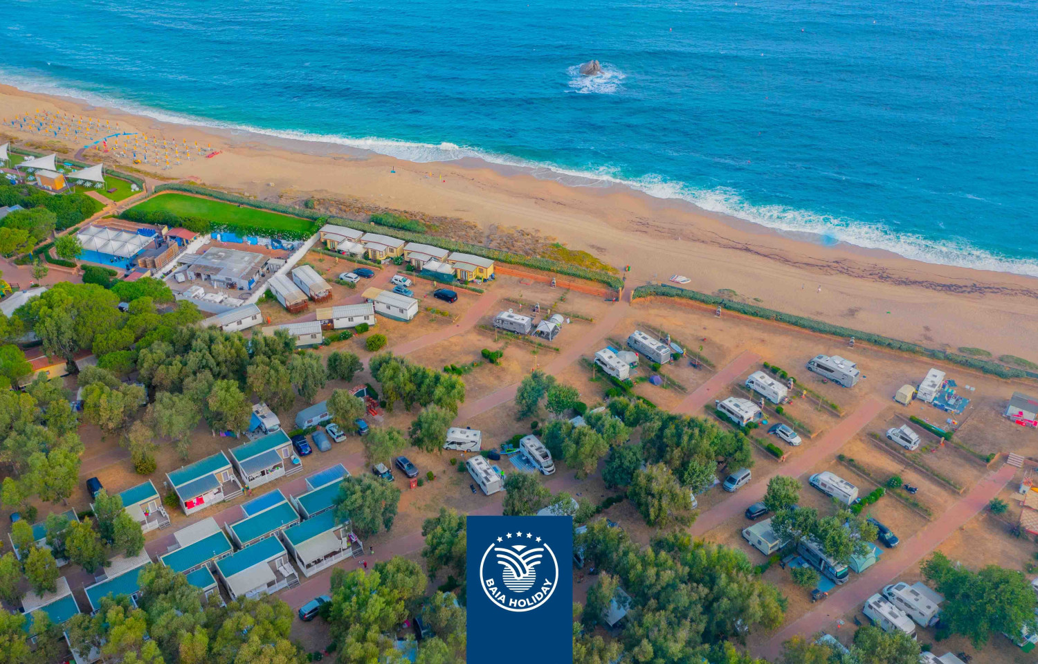 La posizione privilegiata consente di esplorare le meraviglie di questa regione, caratterizzata da paesaggi mozzafiato e acque cristalline. A pochi chilometri si trovano località rinomate come Santa Teresa di Gallura, famosa per le sue scogliere e il caratteristico borgo, e l’arcipelago de La Maddalena, raggiungibile con escursioni in barca. Anche Olbia e il Golfo Aranci sono facilmente accessibili, offrendo opportunità di shopping, cultura e gastronomia tipica sarda. Il campeggio si trova a Vignola Mare, una frazione di Aglientu, dove la natura incontaminata e i tramonti spettacolari rendono ogni soggiorno un’esperienza indimenticabile.SISTEMAZIONIIl Camping Village Baia Blu La Tortuga offre diverse soluzioni di soggiorno, pensate per soddisfare le esigenze di ogni ospite. Per chi ama il comfort, le case mobili sono un’opzione perfetta: dotate di aria condizionata, cucine attrezzate, camere da letto accoglienti, bagno privato e terrazza esterna arredata, possono ospitare fino a sei persone. Gli ospiti possono scegliere tra diverse tipologie di alloggi, alcuni con vista mare e altri immersi nel verde della macchia mediterranea.Per chi preferisce un’esperienza più autentica, il campeggio dispone di ampie piazzole ombreggiate, ideali per tende, caravan e camper. Ogni piazzola è attrezzata con allaccio elettrico e, per i camper, è disponibile il servizio di carico e scarico delle acque. Sono presenti servizi igienici moderni e curati, con bagni privati, lavatoi e docce con acqua calda. Inoltre, per i viaggiatori con amici a quattro zampe, il campeggio offre aree dedicate e alloggi pet-friendly.SERVIZIIl Camping Village Baia Blu La Tortuga è progettato per offrire il massimo del comfort e del divertimento. All'interno della struttura, gli ospiti possono usufruire di un'ampia gamma di servizi, tra cui un parco acquatico di 13.000 mq con piscine per adulti e bambini, scivoli d’acqua, spray park e una piscina wellness con getti idromassaggio e solarium.L’offerta gastronomica include un ristorante-pizzeria con piatti tipici sardi e italiani, un My Beach Cafè con vista mare, una gelateria e un bar in piscina. Sono disponibili anche servizi di mezza pensione, pensione completa, take-away e delivery direttamente agli alloggi. Il market e il bazar interni consentono di acquistare prodotti alimentari e non-food senza dover uscire dalla struttura.Per garantire un soggiorno senza pensieri, sono presenti una reception multilingue, WiFi nelle aree comuni, servizio biglietteria per traghetti e bus, infermeria, guardia notturna e parcheggio interno. Inoltre, il campeggio è dotato di lavanderia con lavatrici e asciugatrici, servizio di noleggio biancheria e baby kit per le famiglie.ATTIVITÀ E INTRATTENIMENTOIl divertimento è assicurato grazie all’animazione per adulti e bambini, con giochi, spettacoli e attività che si svolgono durante tutto il giorno. Il miniclub accoglie i più piccoli con programmi ricreativi dedicati, mentre i ragazzi e gli adulti possono partecipare a tornei sportivi e serate di intrattenimento.Gli amanti dello sport hanno a disposizione campi da beach volley e tennis, tavoli da ping pong e un servizio di noleggio biciclette per esplorare i dintorni. Per chi desidera vivere il mare da protagonista, il campeggio offre corsi di discipline acquatiche come diving, kitesurf, windsurf, wakeboard e sci nautico. Sono disponibili anche gite in barca ed escursioni per scoprire le bellezze naturali della Sardegna.Il Camping Village Baia Blu La Tortuga è il luogo ideale per una vacanza che unisce relax, sport e avventura in uno dei tratti più affascinanti della costa sarda.