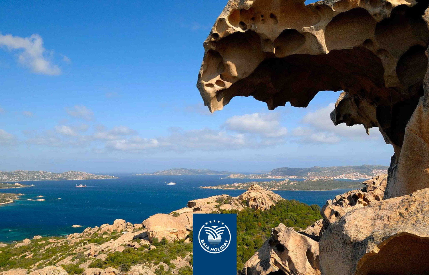 In Sardegna, sulla Costa Smeralda, all'ombra del celebre orso granitico appostato tra le rocce a protezione del più bel lembo della costa sarda.