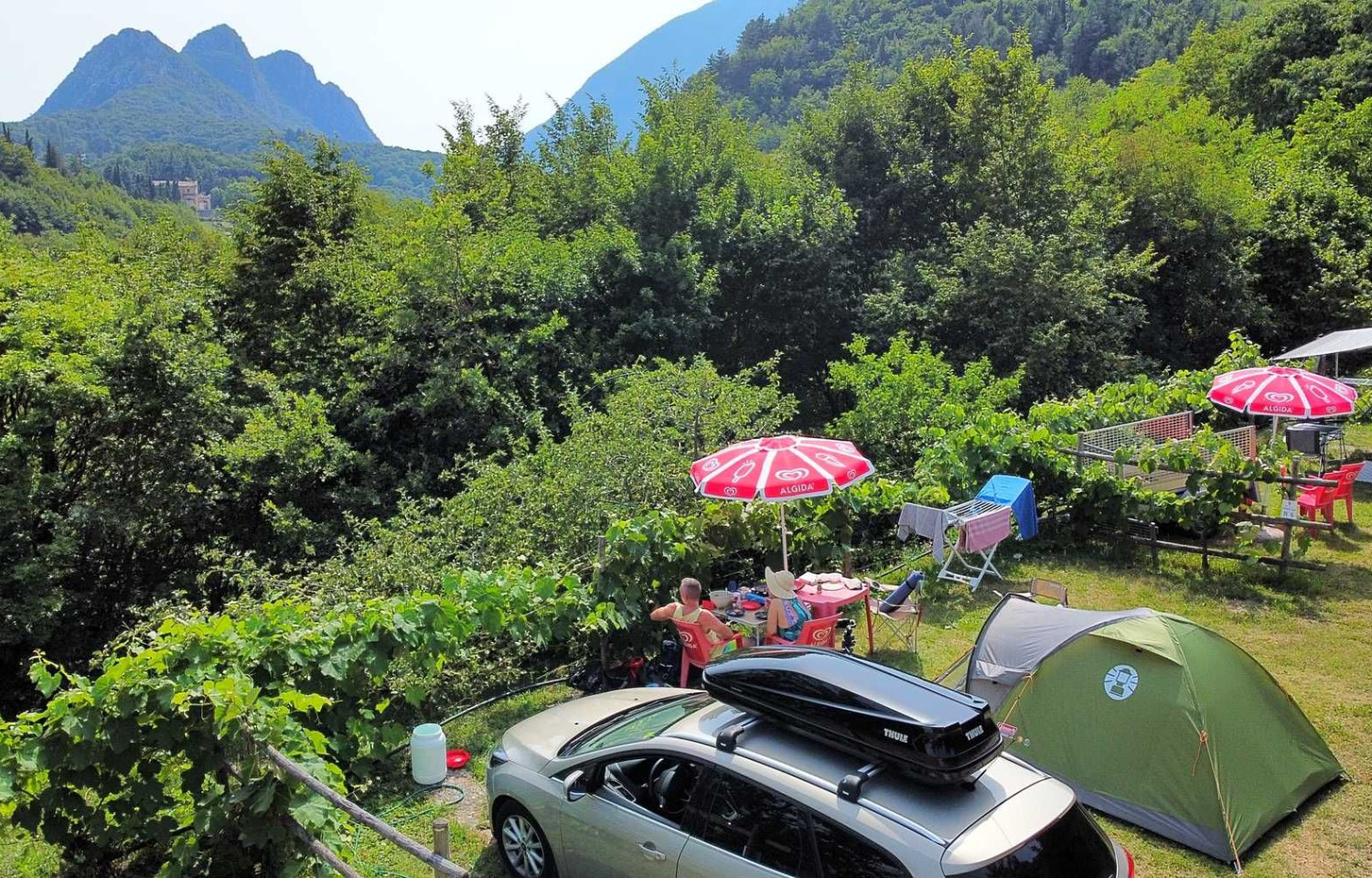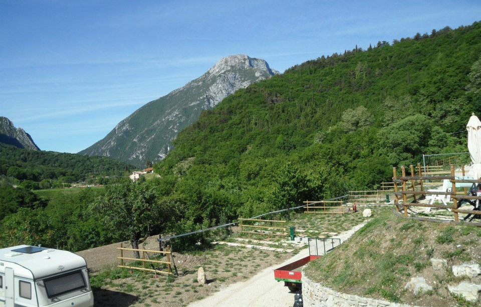 A 7 km dal lago di Garda, campeggio lontano dal centro, piazzole terrazzate, panoramiche, delimitate con allacciamento elettrico e idrico, Servizi igienici con docce calde area barbecue, bar trattoria, carico acqua e scarico WC chimico.