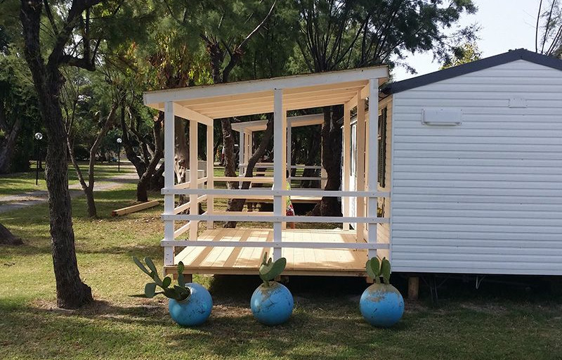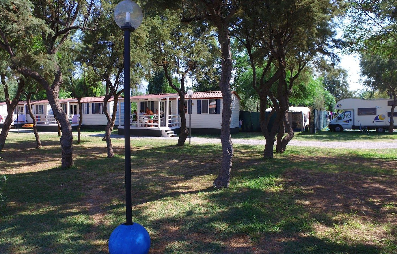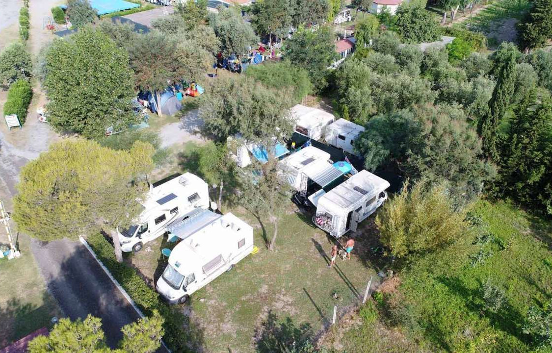 E' un campeggio a dimensione di famiglia, di circa 8000mq in cui regnano la quiete e la tranquiliità che sono gelosamente custodite.All' interno del campeggio è infatti vietatala circolazione delle auto per le quali v'è un ampio parcheggio coperto interno. AREA CAMPEGGIO: prevede piazzole spaziose e ombreggiate da ombra naturale o artificiale, separate l'una dall'altra da aiuole, ognuna con la propria colonnina luce, illuminate singolarmente e accessibili direttamente dai verdi viali principali che accompagnano l'intero campeggio. VILLAGGIO: prevede 11 bungalows che si dividono in monolocali (costituiti da una grande stanza con max 3 letti, angolo cottura attrezzato con stoviglie e pentole, frigorifero, bagno con doccia calda ed esternamente veranda con tavoli e sedie) e bilocali (costituiti da due stanze con max 5 letti, cucinino attrezzato, frigorifero, bagno con doccia calda e veranda).