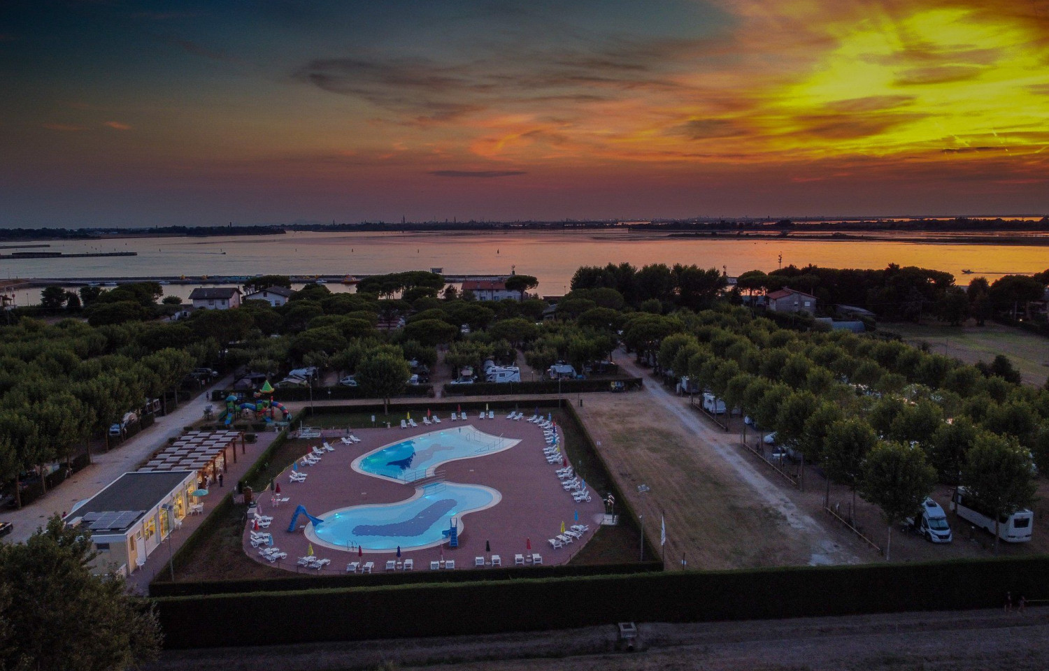 Situato nello splendido litorale di Cavallino- Treporti, località balneare tra le più amate dell'Adriatico, il Camping Miramare dista pochi metri dal Terminal di Punta Sabbioni per raggiungere con la motonave la vicina Venezia e le sue isole. Lasciatevi quindi travolgere dall'atmosfera di relax del campeggio e sarà la vostra vacanza perfetta per scoprire Venezia, I'affascinante Laguna Veneziana con le sue isole (Burano, Torcello e Murano) e le valli ancora incontaminate di Cavallino TreportiAl Camping Village Miramare potrete scegliere tra le diverse soluzioni di alloggi offerti per le vostre vacanze, immersi nel verde della natura e dotati di ogni comfort: graziosi bungalow e confortevoli maxicaravan, tutti climatizzati per poter soggiornare in ogni stagione; verdi piazzole attrezzate per il vostro caravan o la vostra tenda.Il campeggio offre inoltre svariati servizi che potranno rendere ancora più gradevole il soggiorno nella nostra struttura:un negozio fornito di beni di ogni genere per ogni necessità, un Ristorante-Pizzeria-Bar con pietanze d'asporto, l'area di noleggio bici per tutte le vostre escursioni, il servizio wifi per poter navigare in piena libertà su tutta l'area del campeggio, la sala tv con distributore di bevande calde dove poter trascorrere qualche ora in pieno relax, l'area giochi attrezzata per bimbi e ragazzi di ogni età e la tranquilla zona barbecue per poter cucinare una buona grigliata da mangiare in compagnia.Sul Litorale di Cavallino Treporti, il Camping Village Miramare è il campeggio che tradizionalmente rimane aperto più a lungo, da Pasqua ad inizio novembre.