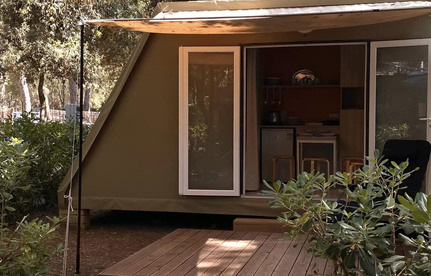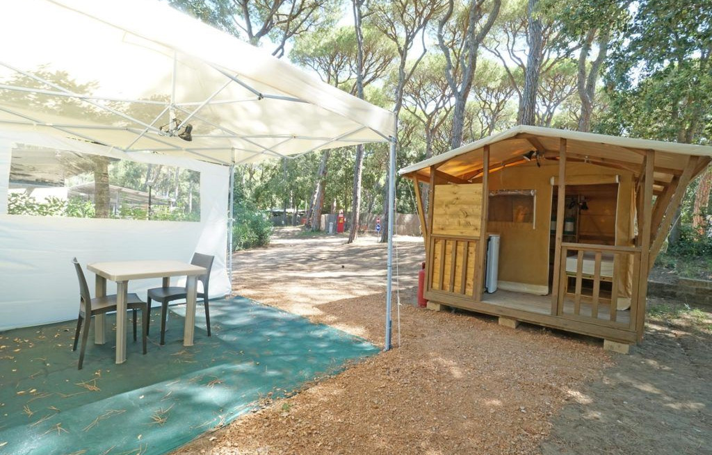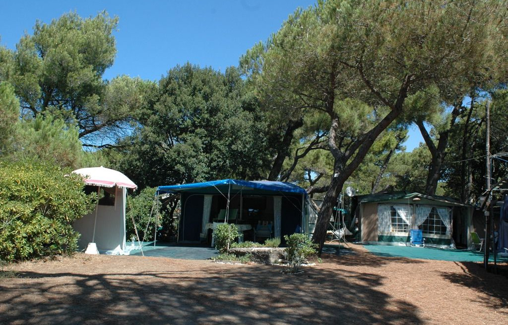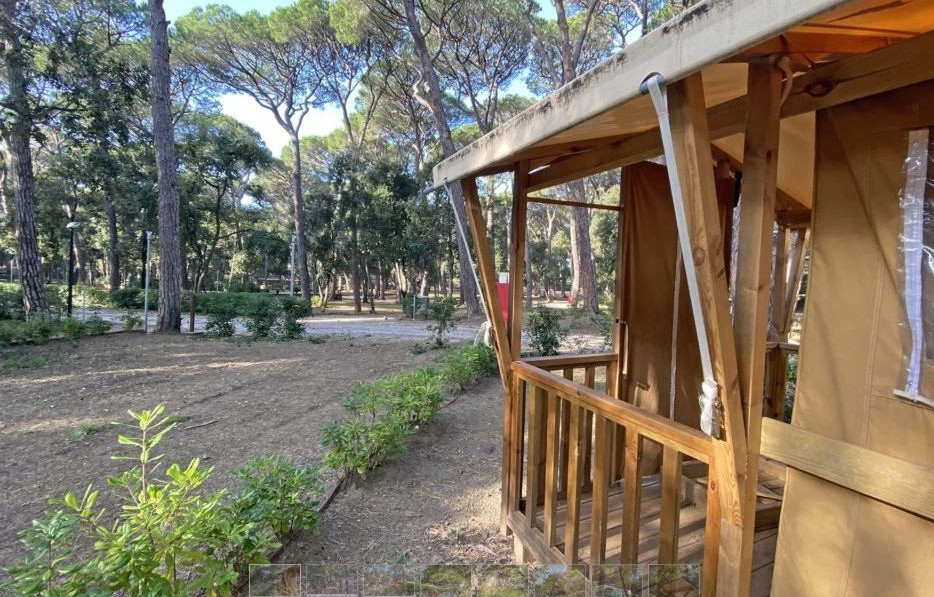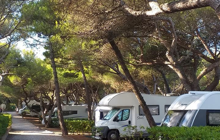 A 300 m dal centro, campeggio con accesso diretto alla spiaggia libera o con stabilimenti balneari, attraverso la pineta, case mobili e tende safari a noleggio, e 500 piazzole ombreggiate da pini, con allaccio elettrico.