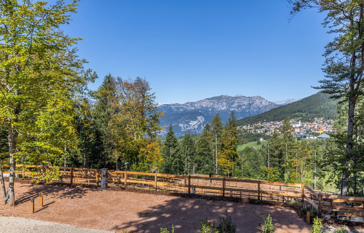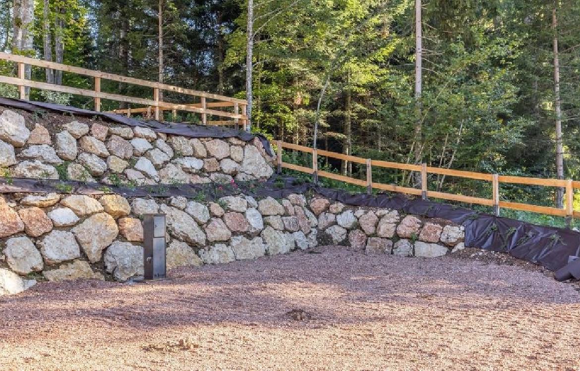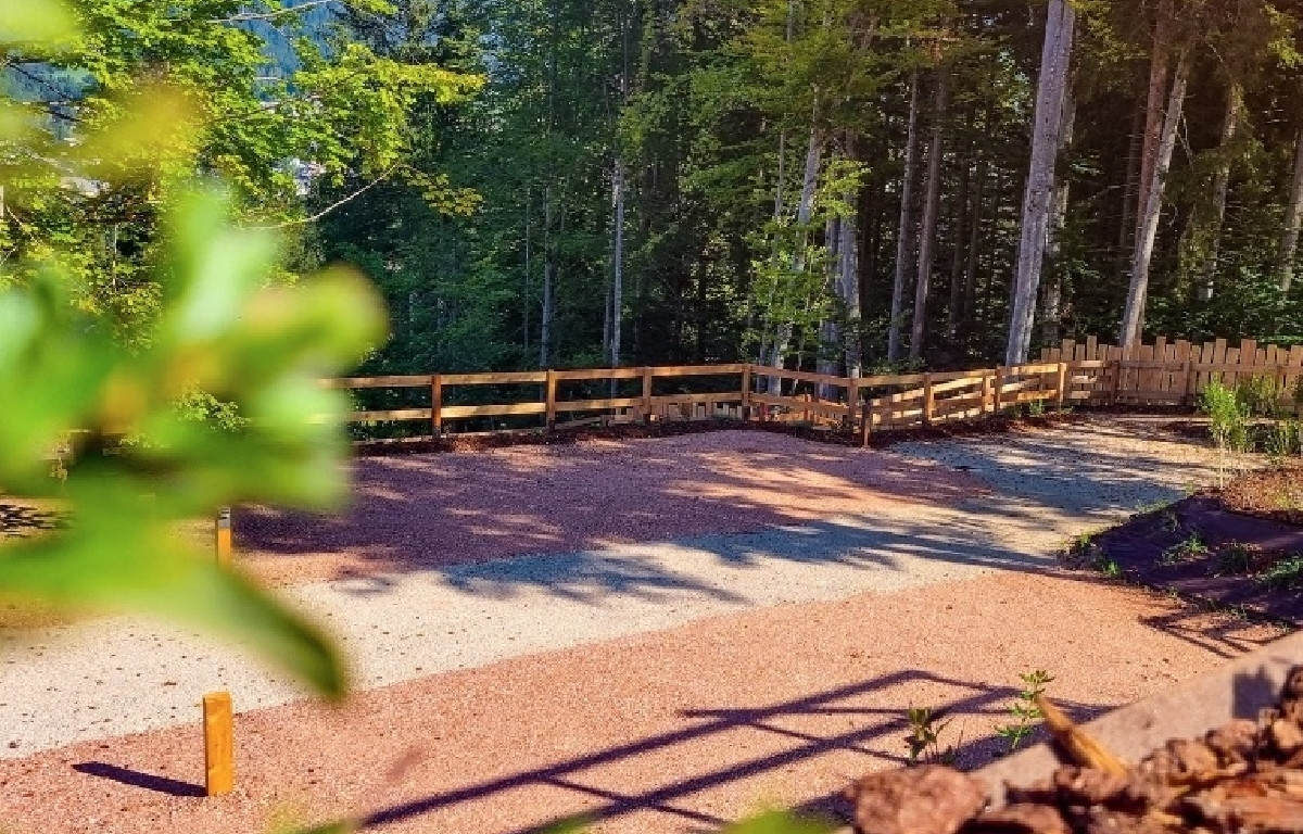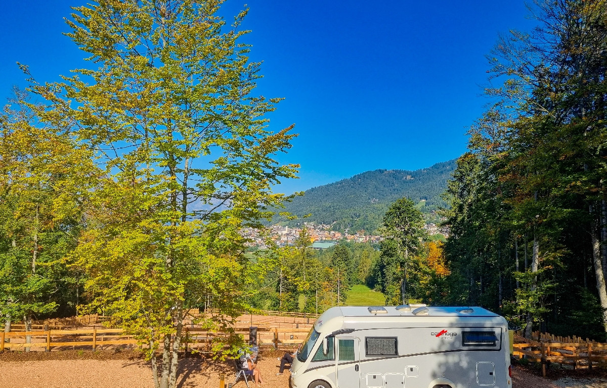 A circa 1 km dal centro, raggiungibile a piedi, campeggio con 84 piazzole panoramiche suddivise in tre tipologie, su stabilizzato e disposte su terrazzamenti, ognuna dotata di allaccio idrico (in estate) ed elettrico, scarico acque grigie.