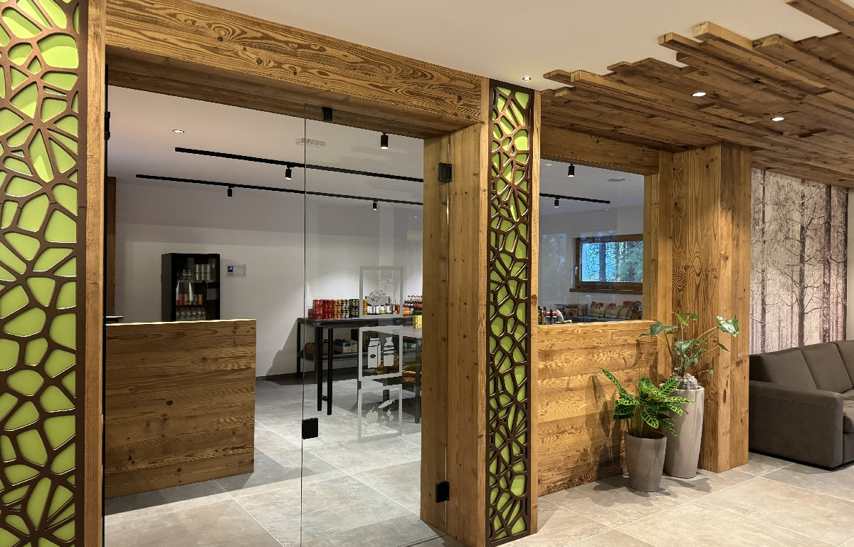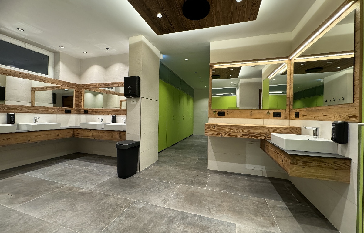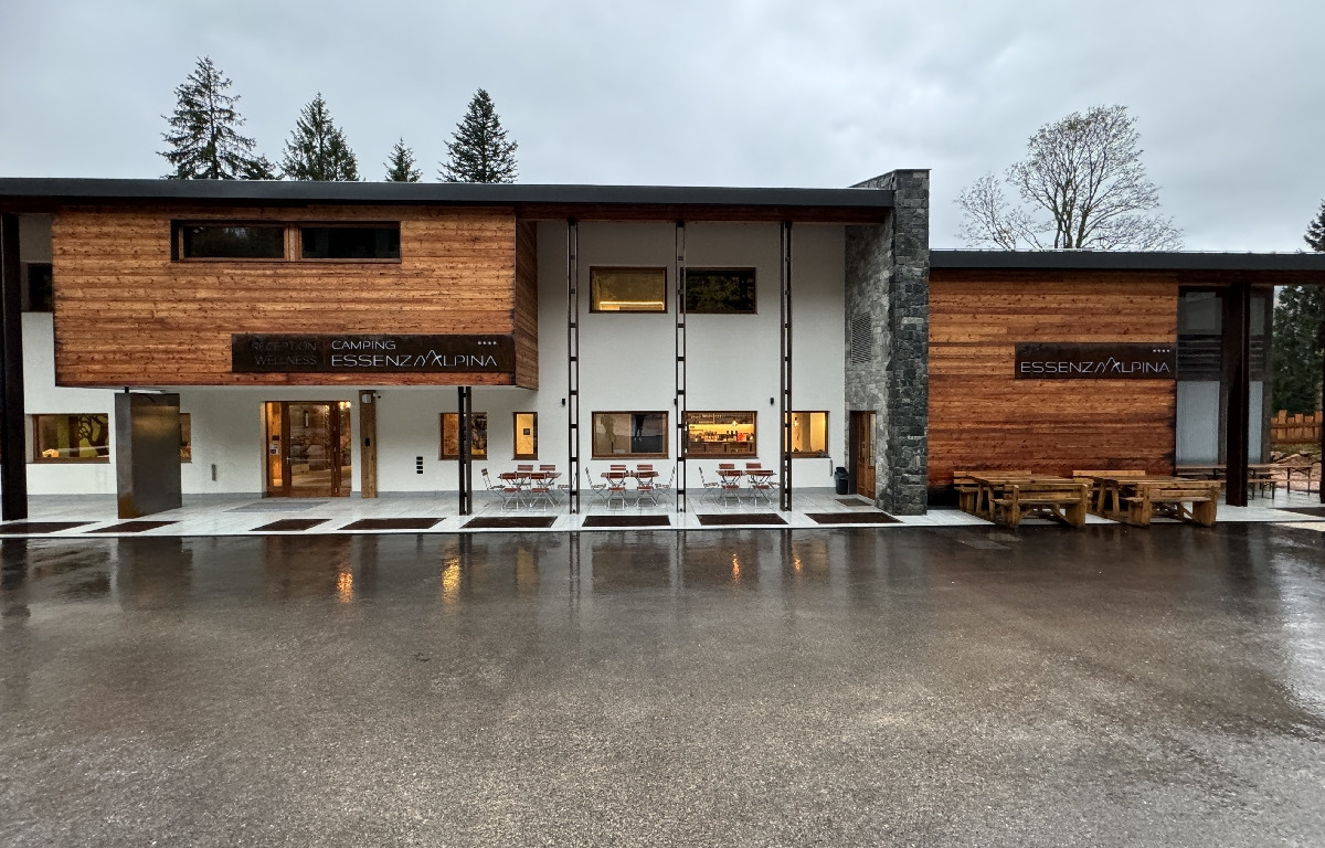 I servizi includono: servizi sanitari con bagni e docce complete di doccia schiuma, bagni privati su richiesta, locale con lavelli per stoviglie e indumenti, lavatrici e asciugatrici, scarico cassetta WC chimico, doccia per cani, miniclub, sala relax con caminetto, bar, piccolo negozio alimentare, deposito sci e attrezzature varie, internet point.Il Camping Essenza Alpina dispone inoltre di un centro benessere con varie tipologie di saune e una vasta scelta di massaggi.