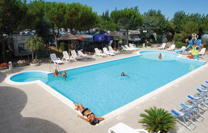 La spiaggia, ampia e sabbiosa, è accessibile senza barriere, mentre il centro città dista circa due chilometri ed è ben collegato con i mezzi pubblici.La struttura offre diverse sistemazioni: bungalow, case mobili, villini e camere in formula hotel. Tutti gli alloggi con cucina sono dotati di bagno privato, veranda coperta, frigorifero e stoviglie, e includono posto auto, accesso alle piscine, servizio spiaggia e animazione. Sono disponibili trilocali, bilocali, case mobili di varie tipologie e camere con aria condizionata e TV. Per chi viaggia in tenda, camper o caravan ci sono piazzole ombreggiate di diverse dimensioni, con elettricità e, in alcune, anche acqua e scarico.Tra i servizi principali figurano bar e ristorante, due piscine con idromassaggio, animazione per adulti e bambini, miniclub, camper service e noleggio bombole a gas. Gli animali di piccola taglia sono ammessi sia nelle piazzole che in spiaggia.Le attività comprendono intrattenimento diurno e serale, spettacoli, serate musicali e giochi sportivi, oltre al miniclub per i più piccoli. La posizione privilegiata e l’atmosfera familiare rendono il campeggio ideale per famiglie, coppie e gruppi in cerca di una vacanza rilassante e divertente sulla costa adriatica.