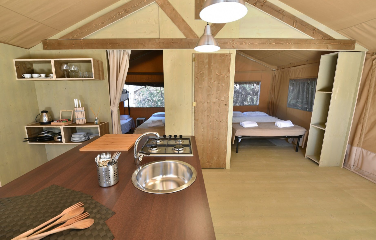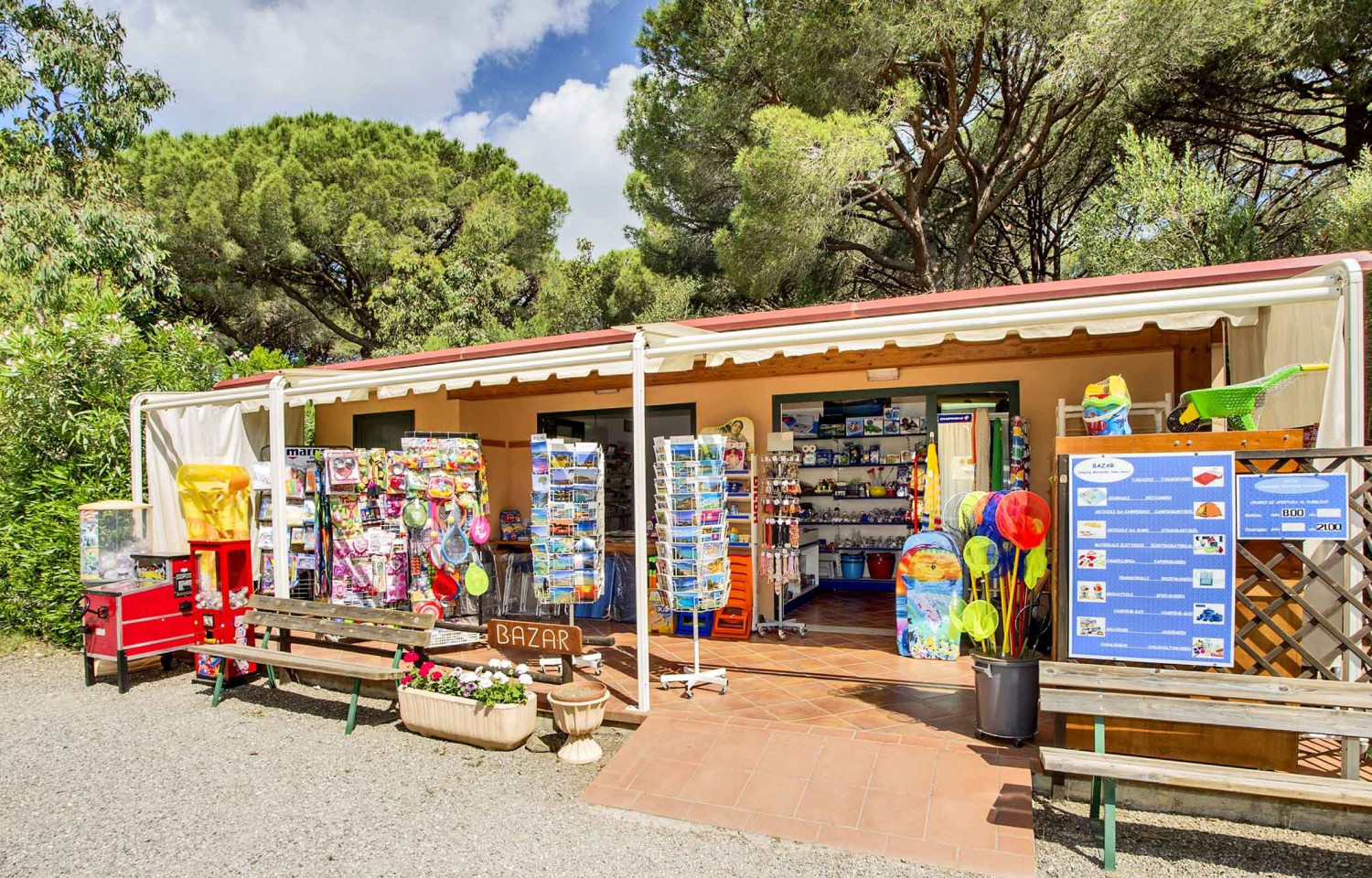 La struttura offre diverse soluzioni di alloggio per soddisfare le esigenze di ogni ospite.Sistemazioni:Villaggio: All'interno della pineta, il campeggio dispone di diverse tipologie di alloggi, tra cui le "Maison", unità abitative confortevoli e ben arredate, ideali per chi cerca il comfort di una casa vacanza immersa nella natura.Glamping: Per un'esperienza unica che combina il contatto con la natura e il lusso, il campeggio offre diverse opzioni di glamping, come le "Mini Lodge Tent", le "Safari Lodge" e le "Country Lodge Tent", tutte dotate di comfort moderni.Camping: Per gli amanti del campeggio tradizionale, sono disponibili piazzole ombreggiate per tende, camper e roulotte, tutte dotate di collegamenti elettrici.Servizi:Ristorazione: All'interno del campeggio si trova il "Mama Restaurant", che propone piatti tipici della cucina toscana e mediterranea, preparati con ingredienti freschi e locali.Spiaggia: La struttura offre accesso diretto a una spiaggia privata, in parte attrezzata con lettini e ombrelloni e in parte libera, permettendo agli ospiti di scegliere la soluzione che preferiscono.Attività sportive: Gli amanti dello sport possono praticare windsurf, kitesurf, immersioni e partecipare a percorsi in bicicletta o passeggiate a cavallo, grazie alle collaborazioni con operatori locali.Animazione per bambini: Durante la stagione estiva, è previsto un programma di animazione dedicato ai più piccoli, con attività ludiche e didattiche.Servizi aggiuntivi: Il campeggio dispone di un mini market e di un bazar per le necessità quotidiane degli ospiti.Attrazioni nei dintorni:La posizione strategica del campeggio permette di esplorare le bellezze della Maremma Toscana, visitando borghi storici, parchi naturali e alcune delle spiagge più suggestive della regione.