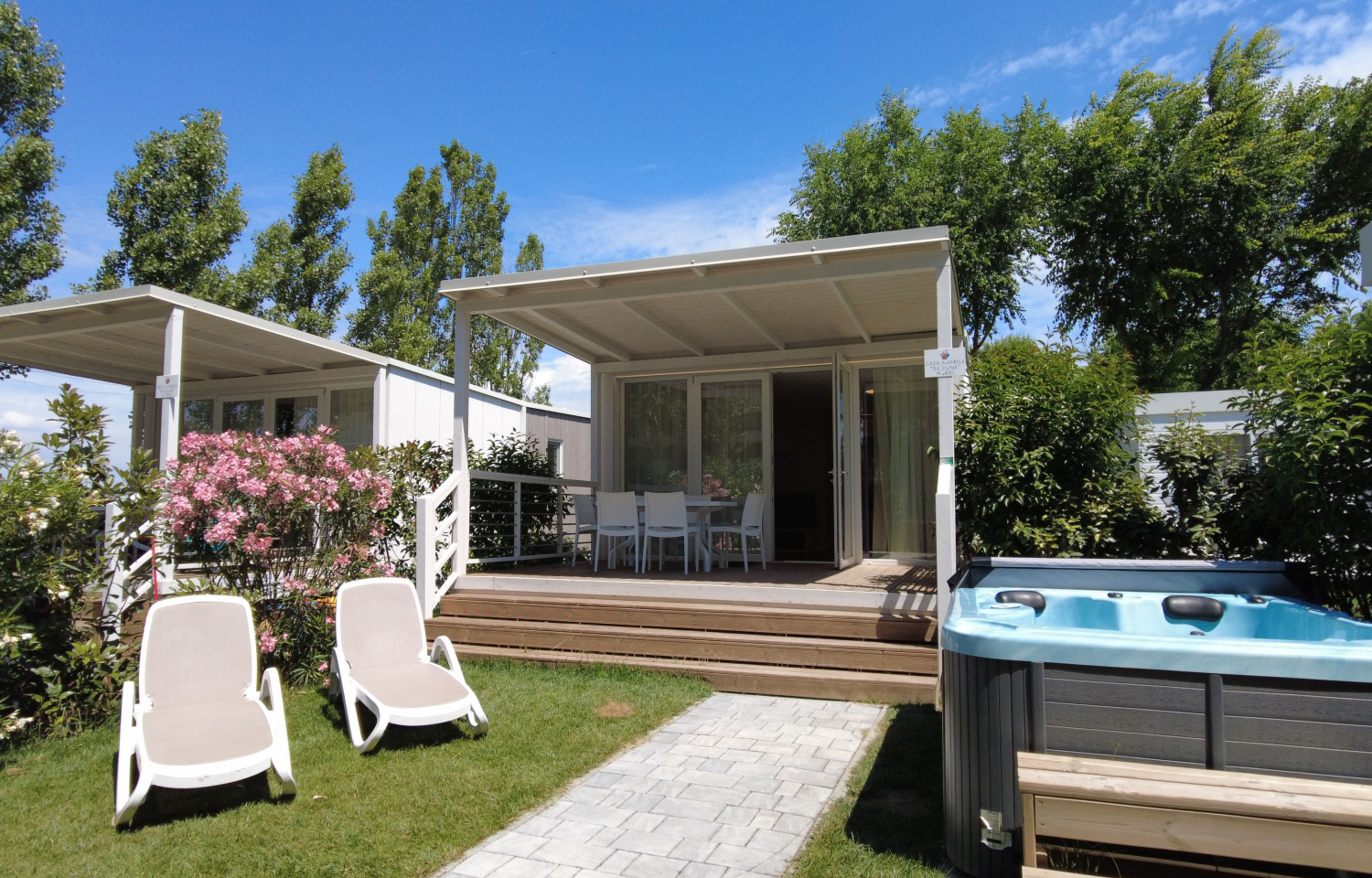 La sua posizione strategica consente di raggiungere facilmente la città di Ravenna, celebre per i suoi mosaici bizantini e il patrimonio artistico unico. Nei dintorni, gli ospiti possono esplorare le Valli di Comacchio, perfette per il birdwatching e le escursioni nella natura, oppure concedersi una giornata di puro divertimento nei vicini parchi tematici della Riviera Romagnola. A soli 250 metri dal campeggio si trova una lunga spiaggia sabbiosa, raggiungibile attraverso una piacevole passeggiata nella pineta, ideale per rilassarsi sotto il sole o per dedicarsi agli sport acquatici.SistemazioniIl Camping Village Adria offre un’ampia varietà di alloggi pensati per soddisfare ogni esigenza. Le case mobili si suddividono in diverse tipologie, tra cui Grand Charme, Prestige, Glam, Next, Smart, Standard, Superior e Green, tutte dotate di comfort moderni come aria condizionata, angolo cottura attrezzato, bagno privato e veranda esterna con area relax. Per un’esperienza più autentica a contatto con la natura, la struttura propone anche le Lodge Tent, tende spaziose e accessoriate con letti confortevoli, zona giorno e piccolo angolo cottura. Per chi viaggia in camper, roulotte o tenda, sono disponibili oltre 480 piazzole immerse nel verde, di diverse dimensioni e dotate di allacciamento elettrico, servizi igienici moderni e aree dedicate agli amici a quattro zampe. Il campeggio è pet-friendly e dispone di spazi recintati per permettere ai cani di muoversi in sicurezza.ServiziIl Camping Village Adria offre una gamma completa di servizi per garantire un soggiorno all’insegna della comodità e del divertimento. Le due piscine, una con scivoli e area bimbi e l’altra con idromassaggio e zona relax, sono il cuore del divertimento acquatico. Il villaggio dispone di ristorante e bar con specialità locali e internazionali, un supermercato ben fornito, aree barbecue e un’infermeria. Gli amanti dello sport possono usufruire di campi da beach volley, beach tennis, calcio e basket, oltre a una zona dedicata al tiro con l’arco. Gli ospiti hanno a disposizione anche un servizio di noleggio biciclette per esplorare i dintorni e colonnine per la ricarica dei veicoli elettrici. Un’attenzione particolare è dedicata all’ambiente con l’utilizzo di energia solare per le strutture principali e una raccolta differenziata ben organizzata.Attività e intrattenimentoL’animazione del Camping Village Adria è pensata per coinvolgere tutte le fasce d’età, con programmi dedicati ai più piccoli, ai ragazzi e agli adulti. Il Mini Club organizza giochi creativi e attività educative per i bambini dai 4 ai 7 anni, mentre lo Junior Club propone sport, tornei e spettacoli per i ragazzi dagli 8 agli 11 anni. I teenager possono invece partecipare al Maxi Club, con eventi pensati per favorire la socializzazione e il divertimento. Durante la giornata, gli ospiti possono prendere parte a corsi di fitness, yoga e acquagym, oppure cimentarsi negli sport acquatici come il SUP e la canoa. La sera, il Pagurotto Theatre accoglie spettacoli dal vivo con musical, cabaret e serate a tema, regalando momenti indimenticabili. La spiaggia attrezzata è il luogo perfetto per praticare sport sulla sabbia o semplicemente godersi il mare Adriatico con il suo fondale dolcemente degradante, ideale per i bambini. Per gli amanti della natura, il campeggio offre escursioni guidate nel Parco del Delta del Po, alla scoperta di un ecosistema unico nel suo genere.