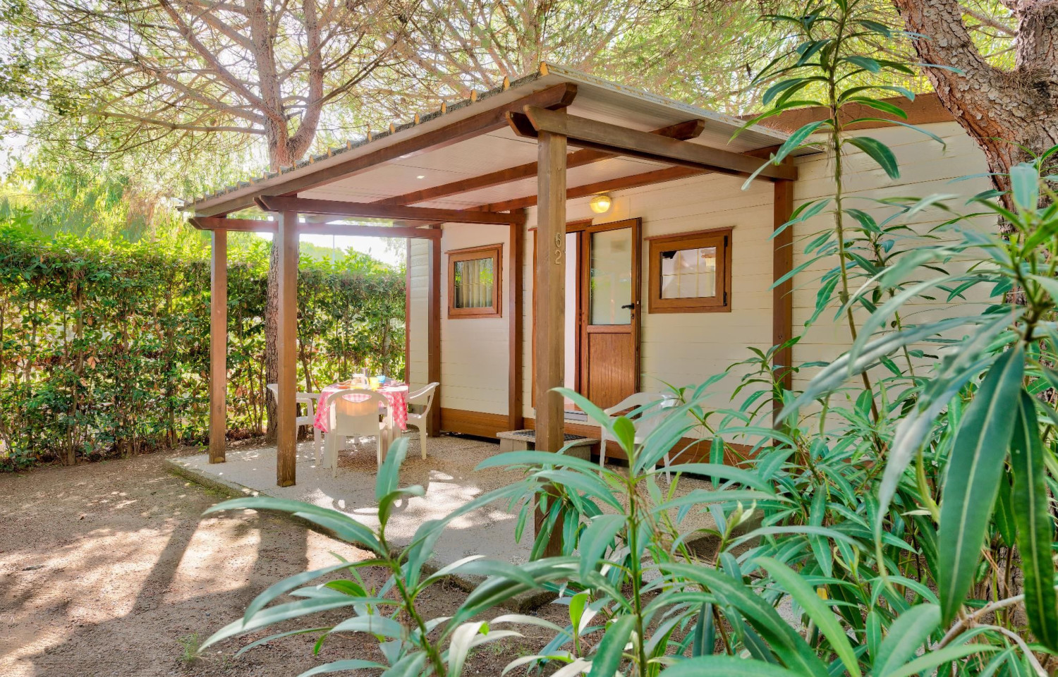 Dalla spiaggia libera si possono ammirare, ad occhio nudo, gran parte delle isole del Mar Tirreno: Isola d'Elba, Capraia, Corsica e Gorgona Si estende su circa 100.000 m2 di terreno pianeggiante e ben ombreggiato da pini.Il sentiero che porta alla spiaggia attraversa una pineta secolare larga circa 300m. e tenuta a parco naturale che offre ampie possibilità di riposo e di svago con lunghe passeggiate.Grandi piazzole con attacco luce, parcheggio interno, 5 gruppi di servizi igienici, un centro commerciale con bazar, supermercato, frutta e verdura, macelleria, bar, ristorante, self-service, pizzeria, parrucchiera ed edicola con tabacchi.Possibilità di praticare windsurf e nelle vicinanze tennis, equitazione e scuola di sub!Parco giochi per bambini, pallavolo, campo di calcio, ping-pong, bocce, nolo-bici, animazione diurna e notturna, piscina per adulti e per bambini.Le CASE MOBILI sono dotate di servizi interni e doccia; angolo cottura, frigorifero, stoviglie da cucina; cuscini, coperte e cambio biancheria da letto settimanale. L'ospite provvede personalmente al tovagliato, al corredo da bagno e alla pulizia e al riordino delle CASE MOBILI durante il soggiorno e alla partenza. Nelle CASE MOBILI non sono ammessi animali domestici di qualsiasi taglia e genere.Servizio Wi-Fi