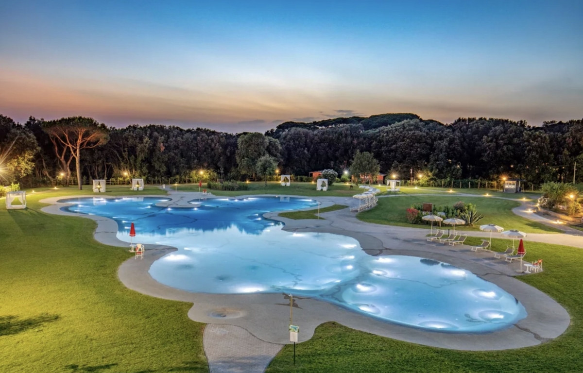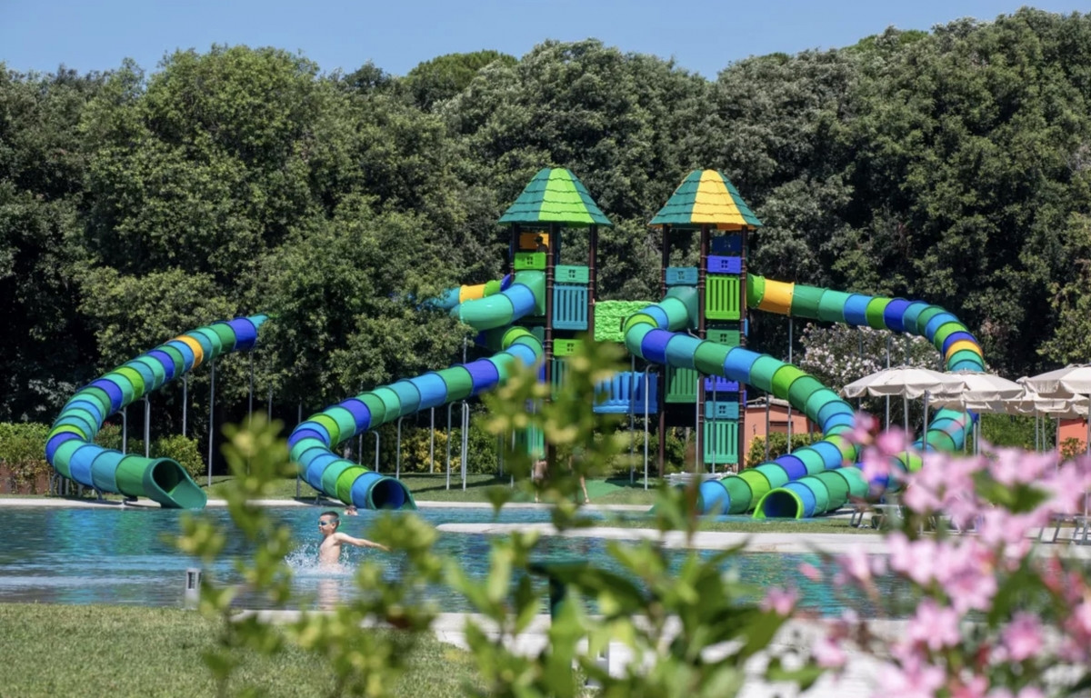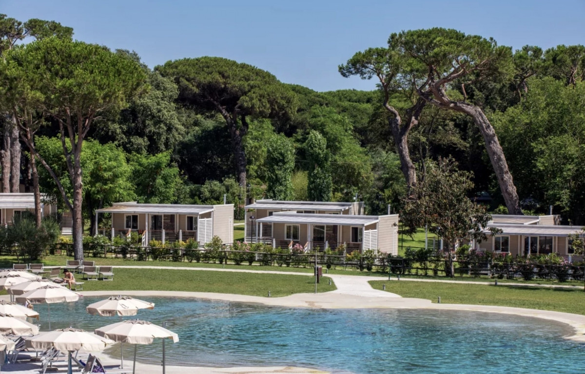 La struttura offre sistemazioni in case mobili, tende glamping e area con 70 piazzole ombreggiate da 20 mq a 100 mq dotate di prese elettriche, alcune anche con attacco idrico ed elettrico fino a 10 A. Piscina lagunare e parco acquatico, impianti sportivi, aree fitness, animazione e miniclub, ristorante/ pizzeria/bar, lounge e pool bar, camper service, servizio navetta interno.