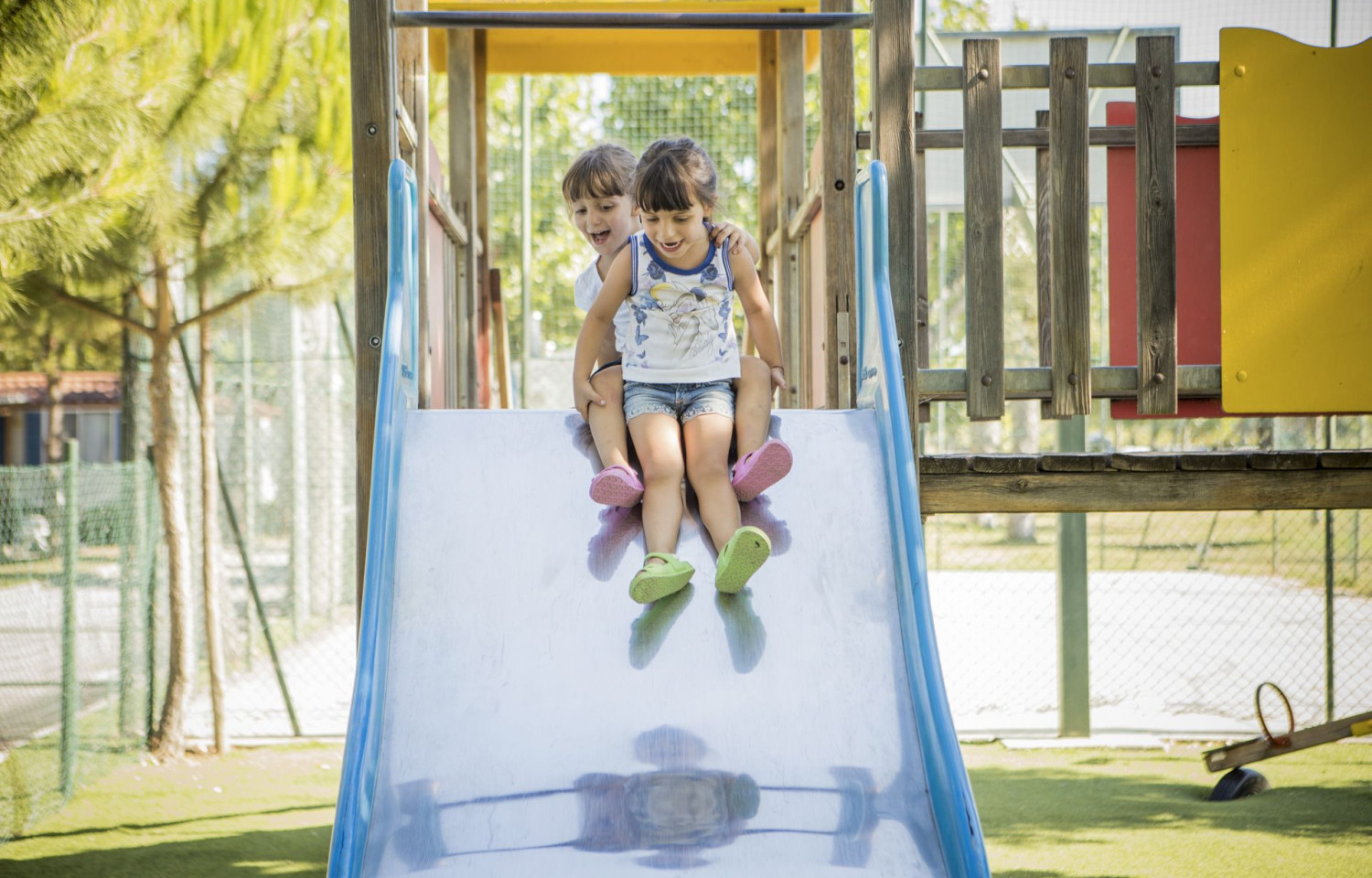 Situato tra l’Abruzzo e le Marche, questa struttura offre il connubio perfetto tra relax e divertimento. La vicinanza alla spiaggia, caratterizzata da bassi fondali ideali per le famiglie, garantisce una vacanza tranquilla e sicura per i più piccoli. Nei dintorni, i visitatori possono esplorare pittoreschi borghi collinari e città affascinanti come San Benedetto del Tronto e Giulianova. La posizione strategica permette anche di godersi il panorama naturale tra montagne e mare, una cornice ideale per escursioni e gite giornaliere.Sistemazioni e piazzoleLa struttura dispone di oltre 200 case mobili immerse nel verde, progettate per garantire un soggiorno confortevole e rilassante. Moderne e spaziose, le case mobili sono suddivise in varie tipologie per soddisfare le esigenze di tutte le famiglie. Ogni casa è dotata di aria condizionata, cucina attrezzata, soggiorno, camere da letto accoglienti e bagno privato. Le tipologie includono unità per 4, 5 o 6 persone, ideali sia per gruppi piccoli sia per famiglie numerose.Per gli amanti del campeggio tradizionale, il villaggio offre piazzole differenziate per ogni esigenza:Le Piazzole Normali (fino a 90 mq) sono perfette per tende, piccoli camper o caravan, con un terreno erboso e buona ombreggiatura. Forniscono una connessione elettrica a 5 ampere.Le Piazzole Plus (fino a 60 mq) aggiungono l’allaccio all’acqua potabile, rendendole ideali per chi cerca un po' più di comfort.Le Piazzole Extra, delimitate da siepi per maggiore privacy, offrono corrente fino a 10 ampere e sono equipaggiate con presa TV, acqua potabile e scarico acque grigie.La novità è rappresentata dalle Piazzole Extra con WC privato, che includono un bagno esclusivo dotato di doccia, lavabo e servizi igienici, garantendo così il massimo della comodità anche in campeggio.Tutte le piazzole sono immerse in un contesto naturale e rilassante, progettate per un massimo di sei persone. Gli animali domestici non sono ammessi per assicurare la massima tranquillità.Servizi per gli ospitiIl Riva Nuova Camping Village si distingue per l’ampia gamma di servizi pensati per ogni necessità. La piscina con parco acquatico, che si estende su ben 1800 mq, è uno dei fiori all’occhiello della struttura. L’area è suddivisa in una zona relax per adulti, con idromassaggio e solarium, e una dedicata ai bambini, con scivoli baby e giochi d’acqua.La spiaggia privata, a pochi passi dal villaggio, garantisce accesso esclusivo ai suoi ospiti e offre lettini, ombrelloni e un servizio impeccabile per godersi appieno il mare. Sono presenti anche una spiaggia libera e attività per adulti e bambini, organizzate dallo staff di animazione.Tra i servizi più apprezzati si trovano i modernissimi blocchi sanitari, progettati nel rispetto dell’ambiente con sistemi avanzati di risparmio idrico ed energetico. La struttura igienica include docce calde spaziose, servizi per persone con disabilità, lavanderia con lavatrici e asciugatrici a gettone, una stireria e una baby room.Per i pasti, il campeggio propone un ristorante situato al primo piano, con vista sulla piscina, dove è possibile gustare specialità locali attraverso il servizio self-service o take-away. Il bar, posizionato di fronte alla piscina, offre snack, cocktail, waffle freschi e gelati, creando un’atmosfera conviviale sia di giorno che di sera. Un mini-market, situato vicino alla reception, offre prodotti freschi e di prima necessità per chi preferisce cucinare nei propri alloggi.Infine, i campi sportivi e le aree gioco completano l’offerta. Campi da tennis, calcetto in erba e un campo polifunzionale accolgono i visitatori più sportivi, mentre i bambini potranno divertirsi nei parchi gioco immersi nel verde.Attività e intrattenimentoLa vita al Riva Nuova Camping Village è animata dal ricco programma di intrattenimento pensato per grandi e piccini. Lo staff organizza tornei sportivi, giochi e attività ricreative, coinvolgendo gli ospiti in esperienze memorabili. Il miniclub, dedicato ai bambini dai 4 ai 12 anni, e lo junior club, rivolto ai ragazzi dai 12 ai 16 anni, garantiscono divertimento e socializzazione durante tutto il soggiorno.Gli adulti possono scegliere tra lezioni di aerobica, acquagym e spinning, oppure rilassarsi nell’area relax della piscina. Di sera, spettacoli, serate a tema e balli intrattengono gli ospiti, regalando un’atmosfera festosa e coinvolgente.La posizione del campeggio invita inoltre a esplorare i dintorni, tra borghi medievali, mercatini locali e percorsi naturalistici che attraversano le colline e le spiagge dell’Abruzzo e delle Marche.
