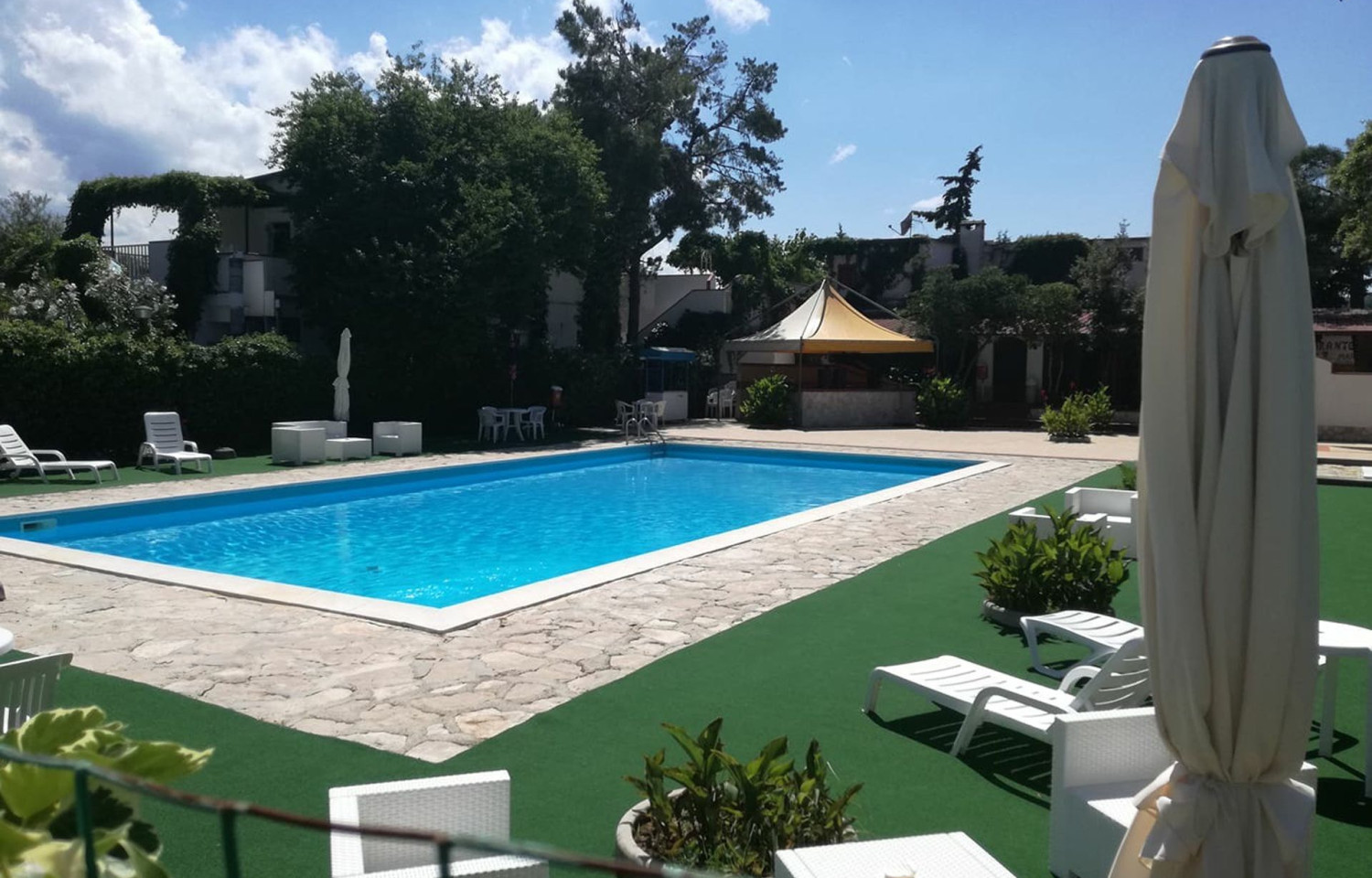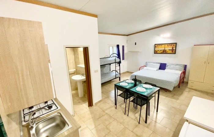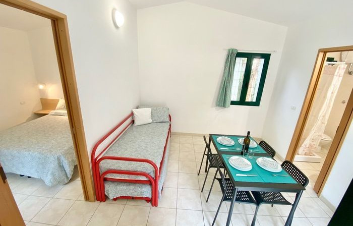 Intensamente alberato con pini, tamerici ed acacie è l'ideale per una vacanza di pace, serenità e tanta simpatia. Il Villaggio dispone di appartamenti in muratura, bungalows e chalets (mobile home) in prefabbricato completamente arredati con funzionalità e ciascuno dispone di propria terrazza. Il Campeggio dispone di 150 piazzole, tutte all'ombra, munite di corrente elettrica, attrezzate per tende, roulottes e campers. Servizi sanitari e docce calde gratuite. 3 diversi tipi di soste camper e aree attrezzate con attacco luce, carico acqua e pozzetto scarico WC. I servizi all'interno della struttura: piscina, servizio Wi-Fi free, 2 bar, ristorante tipico, pizzeria, custodia valori, parco giochi per bambini, barbecue ad uso comune, campo di calcetto, campo volley e animazione. Infine incastonata in una stupenda baia, la nostra spiaggia riservata, di sabbia finissima e dorata, sia libera che attrezzata con ombrelloni e sdraio.