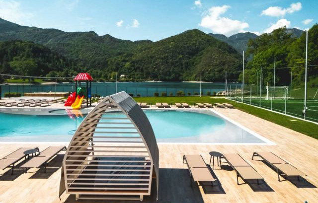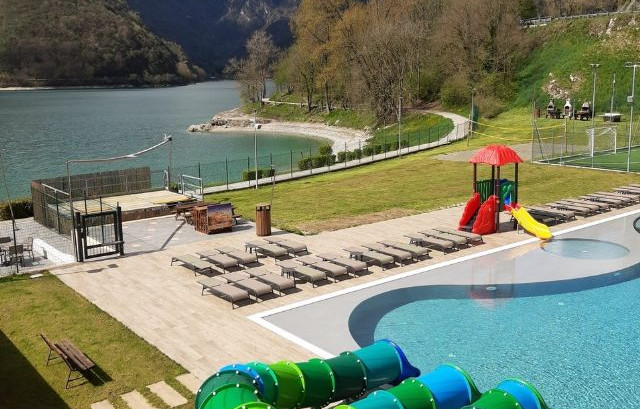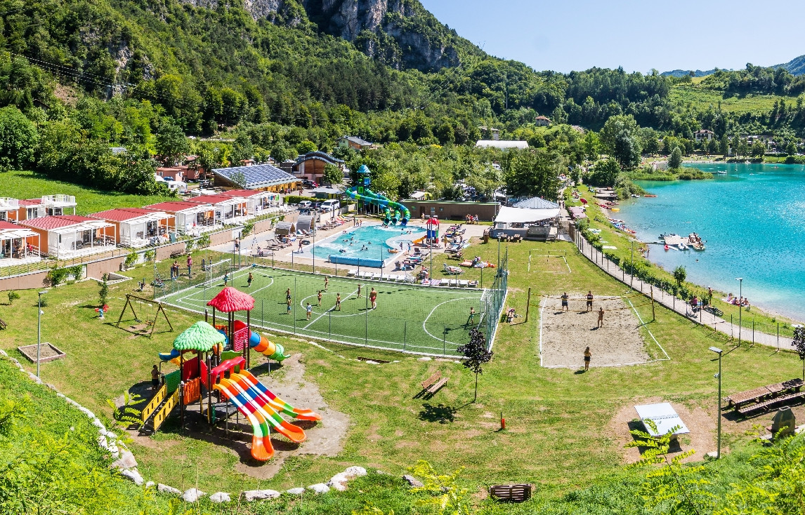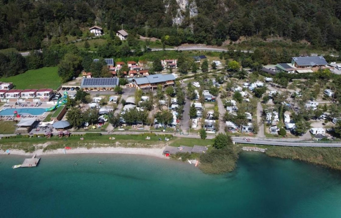 A 1,2 km dal centro, immersa in un contesto naturale, la struttura con area wellness e accesso diretto alle sponde del Lago di Ledro, dispone di case mobili con vista lago e piscina, e 200 piazzole ombreggiate dotate di allacciamento elettrico da 6A, alcune anche con allaccio gas, acqua potabile e scarico.