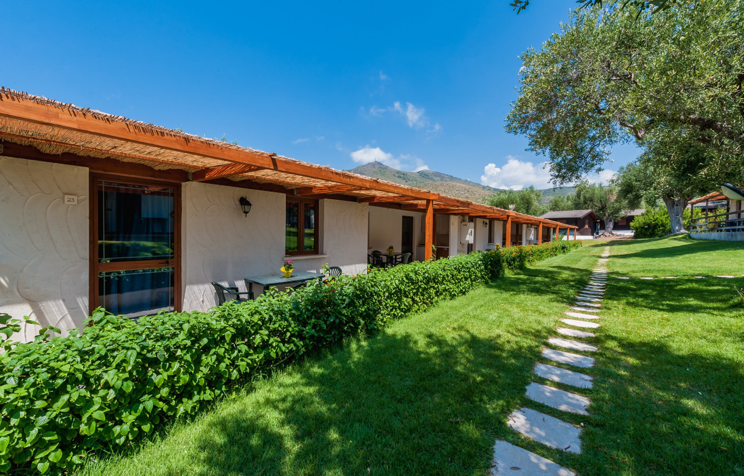 Nel Parco Nazionale del Cilento e Vallo di Diano, a mezza collina, tra ulivi secolari, altre essenze e prati, un ambiente naturale, fresco e rilassante: un “villaggio climatico”, lontano dal caldo oppressivo, ma a poche centinaia di metri dal mare e dal centro abitato.