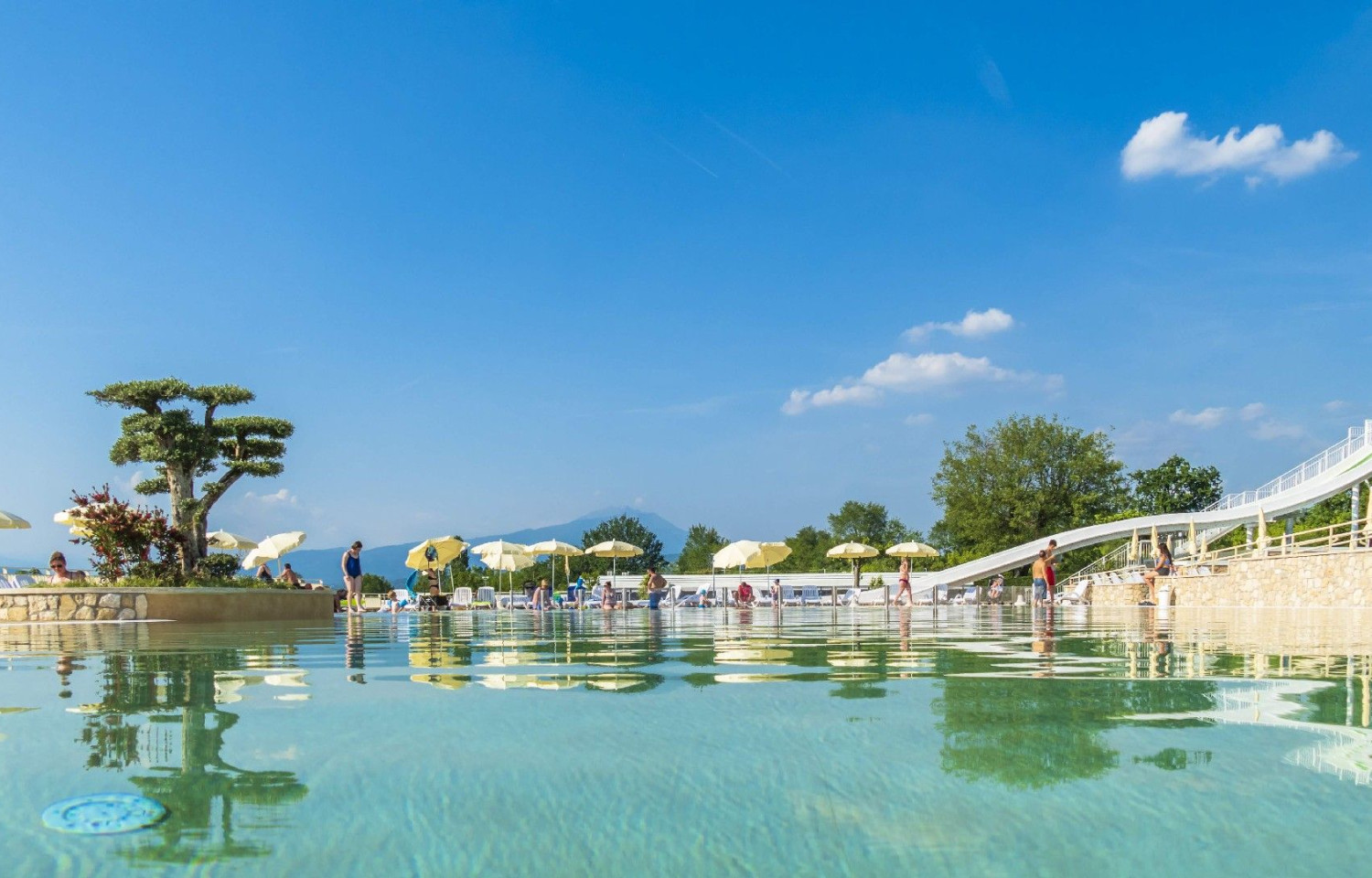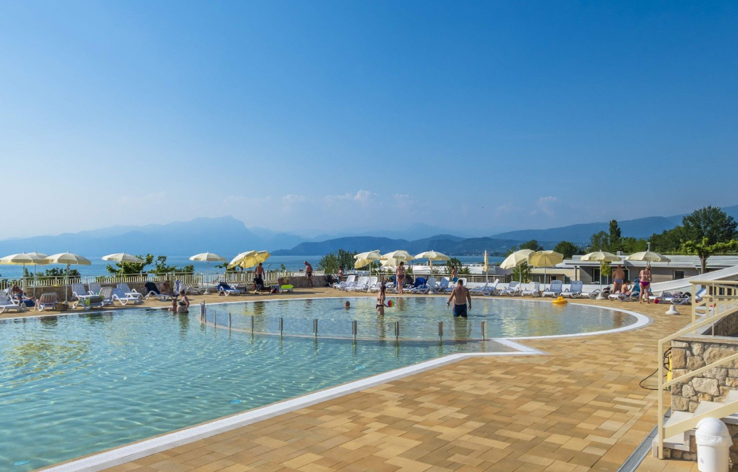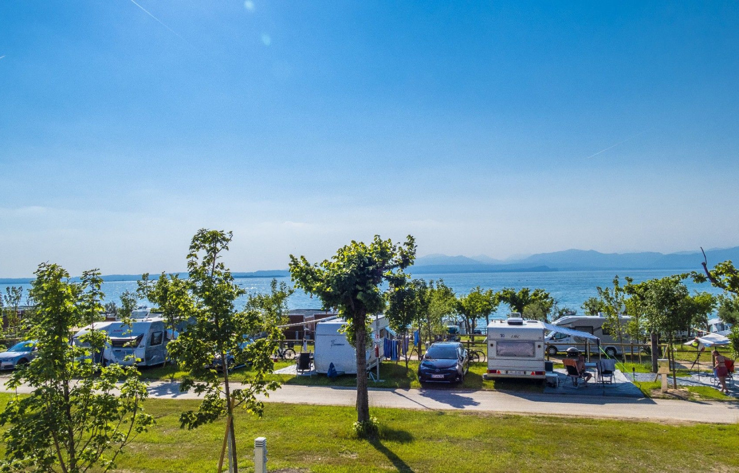Piccola spiaggia di ghiaia ed erba, servizi igienici, docce calde, bagni privati su richiesta, bagni per disabili, parco acquatico, bar, ristorante, camper service.