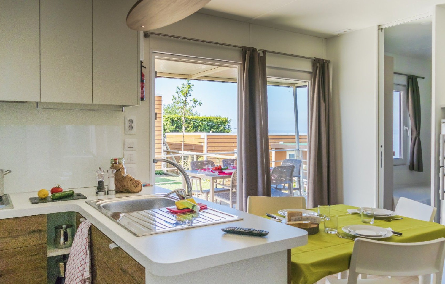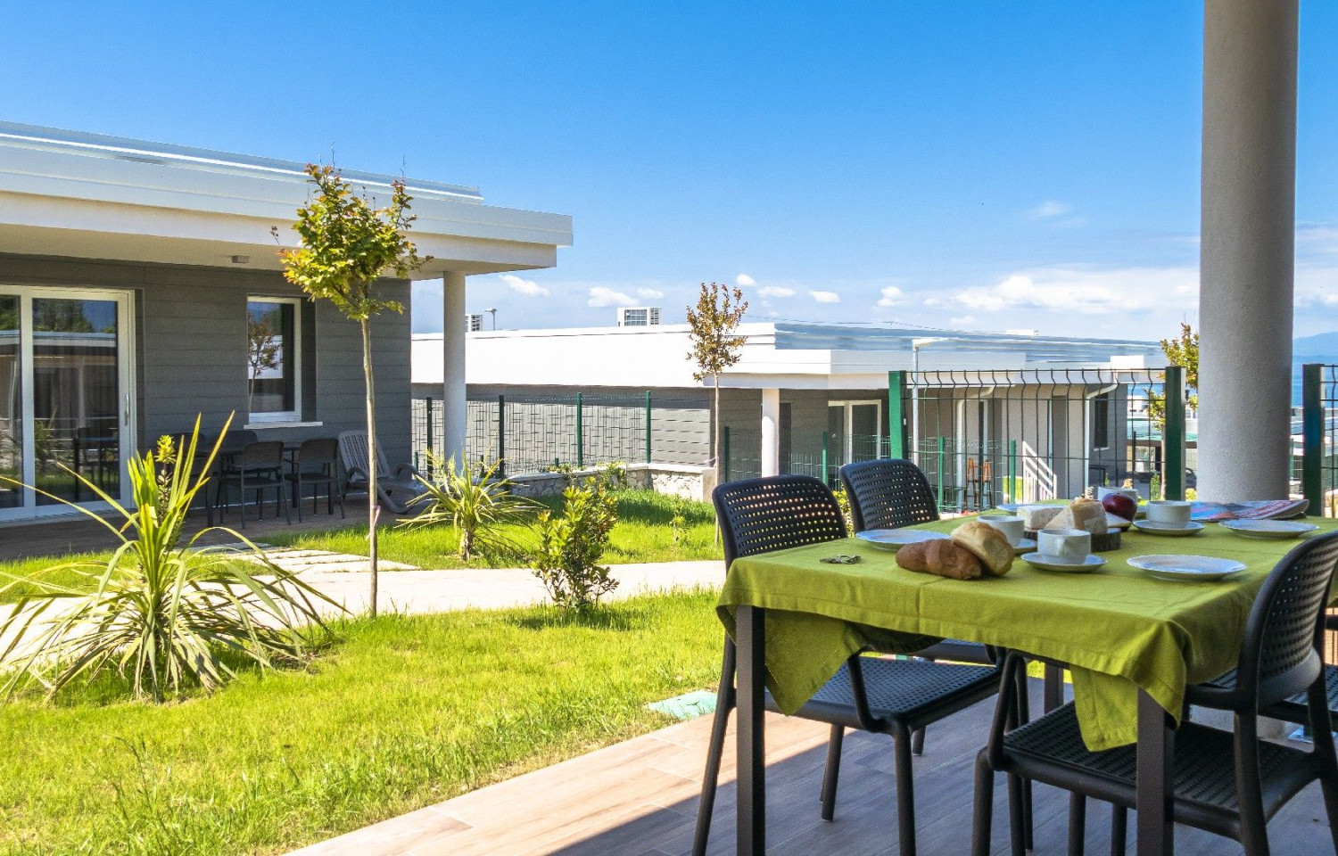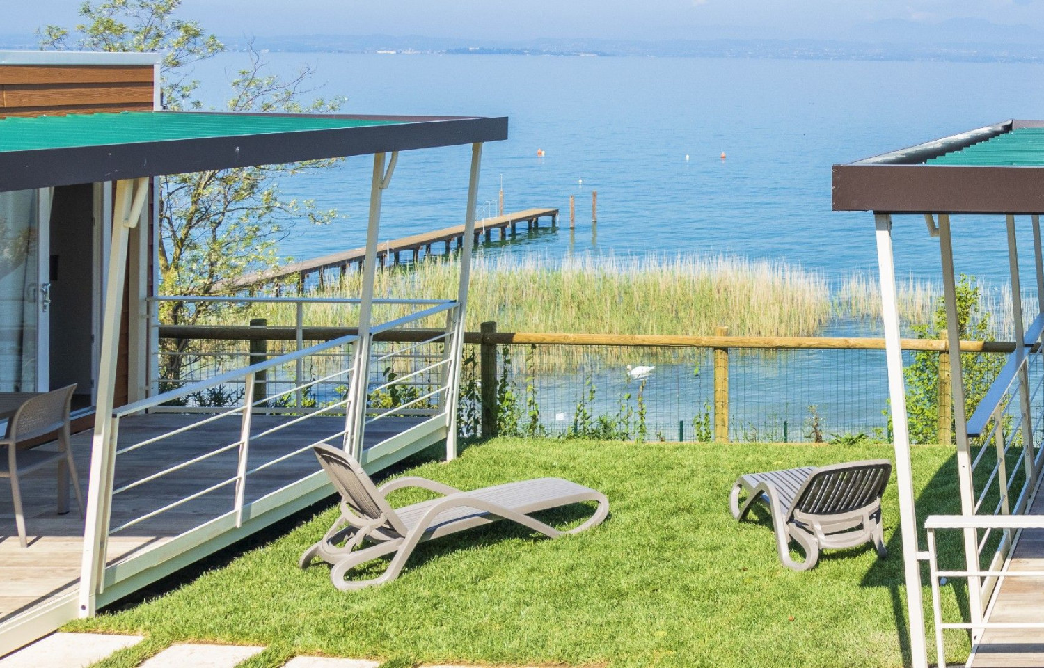 Piccola spiaggia di ghiaia ed erba, servizi igienici, docce calde, bagni privati su richiesta, bagni per disabili, parco acquatico, bar, ristorante, camper service.