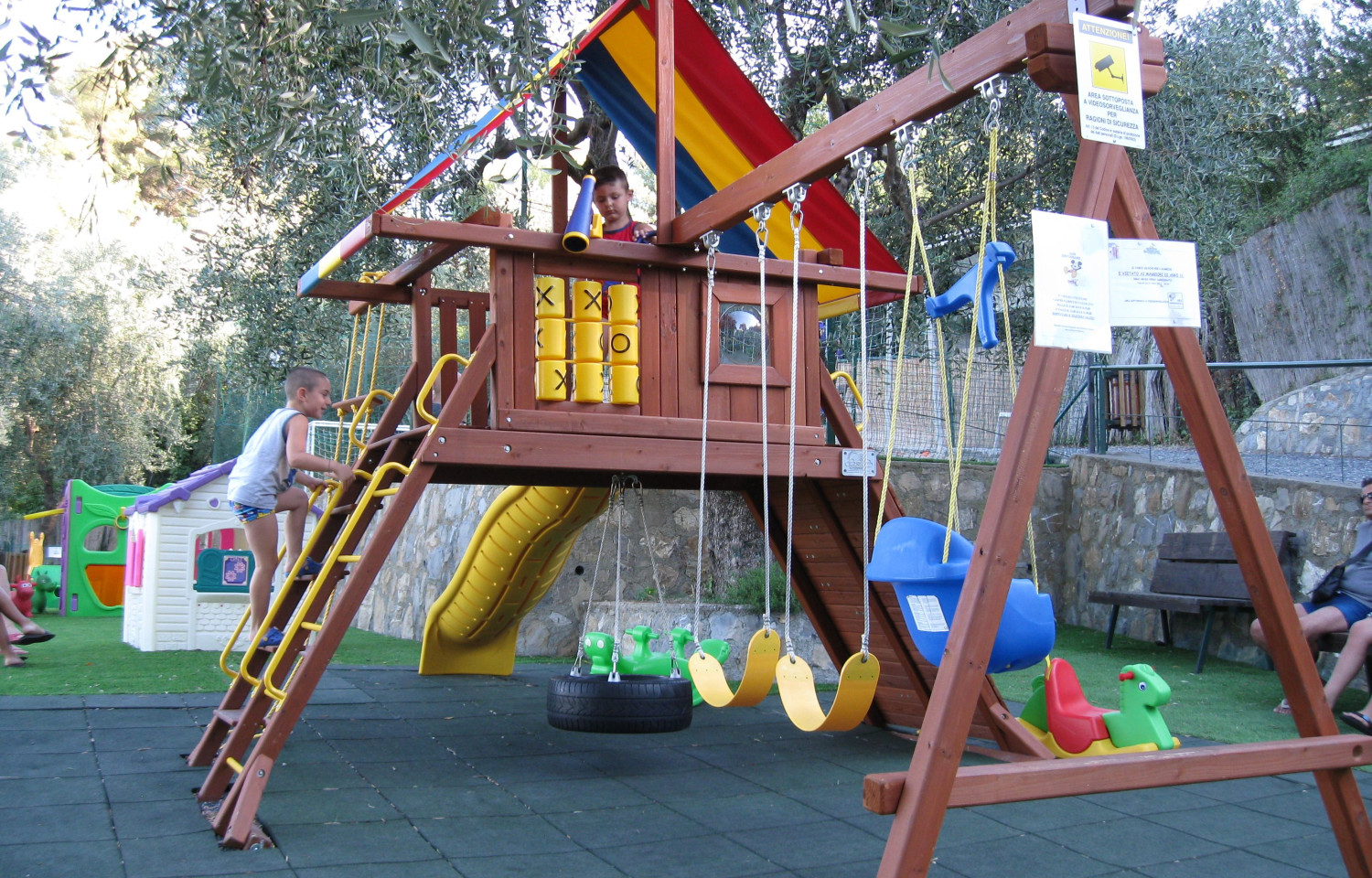 In un'area terrazzata di mq 30.000 al Vs. arrivo vi accoglieranno: confortevoli Bungalows in legno composti da veranda con tavoli e sedie da giardino, camera matrimoniale, soggiorno con divano letto, angolo cottura attrezzato di stoviglie, aria condizionata, riscaldamento; alcuni Bungalows sono dotati di TV LCD SAT e doccia idromassaggio. Piazzole dotate di corrente elettrica a norme CEE con disponibilita' di Camper Service; area ombreggiata adibita per piazzole tende. IL Parco vacanze "Il Frantoio" vi offre inoltre : servizio di bar/tavola calda (da Giugno a Settembre) ; Piscina gratuita (da Giugno a Settembre), Bus Navetta gratuito per la spiaggia (da Giugno a Settembre) servizi docce calde a gettone, sala ritrovo Tv gratuita, servizio lavanderia a gettoni, custodia valori gratuita. LINGUE PARLATE : INGLESE, FRANCESE TEDESCO Come raggiungerci: Autostrada A10 GE- VENTIMIGLIA , USCITA SAN BARTOLOMEO AL MARE . PROSEGUIRE DIREZIONE MARE PER CA . MT 800, SULLA DX ENTRATA FRANTOIO CAMPING N.15 BUNGALOWS DA 2/4/6 Persone tutti dotati di aria condizionata/riscaldamento così composti: - angolo cottura completo di stoviglie - soggiorno con tavolo e sedie (nei bungalow n.6 ospiti con divano letto) - bagno con lavabo , wc , doccia , acqua calda - n.01 oppure n.02 camere matrimoniali - terrazzino/veranda attrezzata con tavolo e sedie da giardino - fornitura di lenzuola e piumoni ( no biancheria bagno) - alcuni nuovi Bungalows dotati di TVLCD SAT e doccia idromassaggio PIAZZOLE PER ROULOTTE , CAMPER. AREA TENDE (in pineta, no elettricita') GRUPPI DI SERVIZI COMPOSTI DA : - n.30 docce calde a gettoniera + n.4 fredde - n.40 lavabi + n.08 lavabi per bimbi - n.16 lavapanni - n.20 lavapiatti - n.12 lavapiedi - n.24 wc + n.10 turche - n.05 bidet - Bagno completo per Disabili - WC chimico DETTAGLI GPS 43°55' 57 n, 08° 05' 51” E (ALTEZZA 50 M) ( 43°55'53”69 Long est 8°5'56”.39 da Google earth)