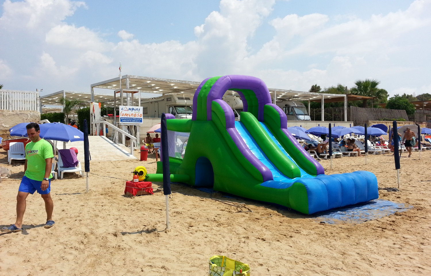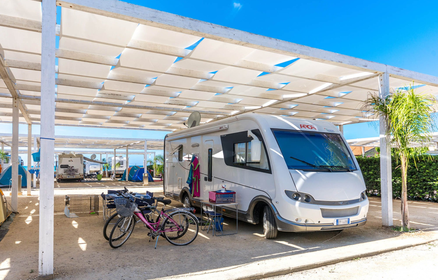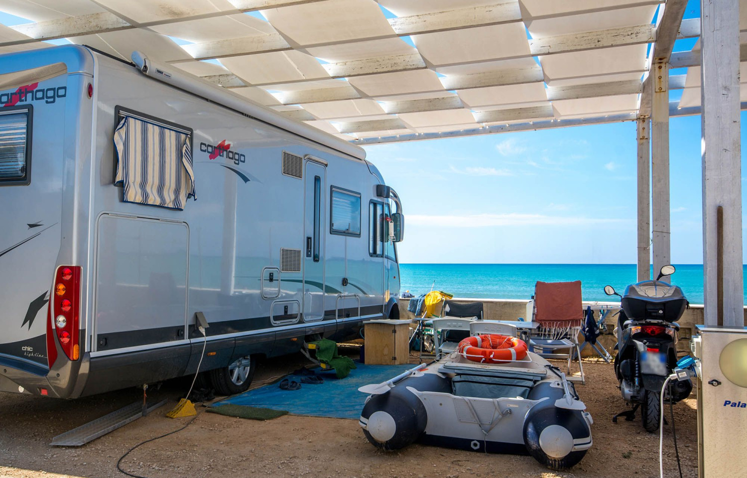 Croce Camerina, in provincia di Ragusa, nella riviera siciliana, a sud della Sicilia orientale direttamente sul mar Mediterraneo. Il campeggio di recentissima costruzione, inaugurato a giugno del 2009, si estende su una superficie di 15000 mq , dotato di tutti i comfort come l’accesso diretto al mare con fine sabbia dorata e di un’ampia spiaggia privata attrezzata con sdraio ed ombrelloni. Ideale per una vacanza in famiglia, piacevole per un soggiorno di relax e divertimento. Il camping si trova a soli 4 km da S. Croce Camerina e a 25 km dal capoluogo Ragusa. Dal Camping Luminoso è possibile raggiungere in breve tempo le località più belle e caratteristiche della provincia di Ragusa: Ragusa Ibla, Modica, Scicli... Gestito da due giovani sorelle, specializzate e qualificate nell’accoglienza turistica, l’organizzazione ha puntato soprattutto sulla tranquillità e sul benessere dei campeggiatori. Tanta cortesia ed attenzione alle esigenze degli ospiti. Il campeggio ha una capacità ricettiva di 250 persone, distribuita su 52 piazzole ben delimitate di 65 mq, costruite con travi in legno lamellare coperte con teli in pvc ignifughi e arricchite da vegetazione fiorita. Ogni piazzola è ampiamente dimensionata e consente facile accesso anche agli autocaravan di grandi dimensioni. Infatti una delle caratteristiche principali della struttura è l’agevole accessibilità e facilità di manovra. L’altezza della struttura è tra 3.50 e 3.80 m, ottima per l’areazione e abbastanza grande per ogni tipo di camper. Inoltre è disponibile un posto auto di 12mq in un parcheggio coperto protetto da chiave elettronica. Il campeggio dispone di: 29 bagni privati dotati di lavabo con acqua calda (ogni equipaggio ha un proprio bagno); 12 docce con acqua calda; 4 docce con acqua fredda; 2 bagni disabili; 5 pilozze e un’ampia zona lavanderia e stireria. Spiaggia Direttamente dal campeggio si accede alla spiaggia privata attrezzata con lettini ed ombrelloni nel periodo estivo che va da maggio fino a tutto settembre. Durante il restante periodo si usufruisce comunque dei lettini ed ombrelloni.