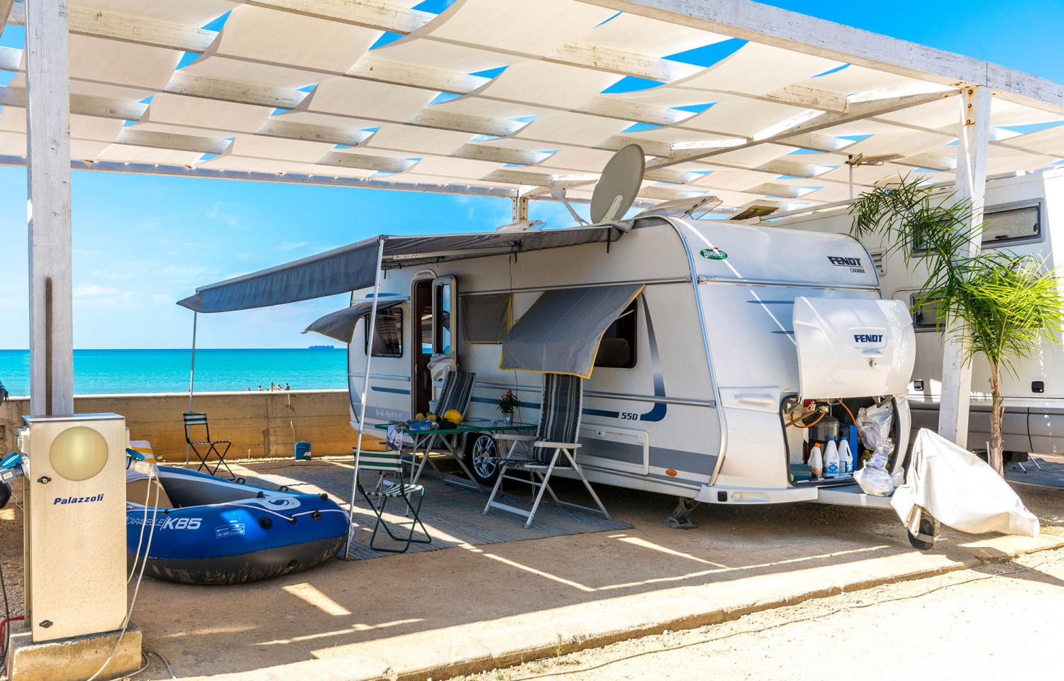 Aperto tutto l’anno, il campeggio è situato a Punta Braccetto località turistica di S.