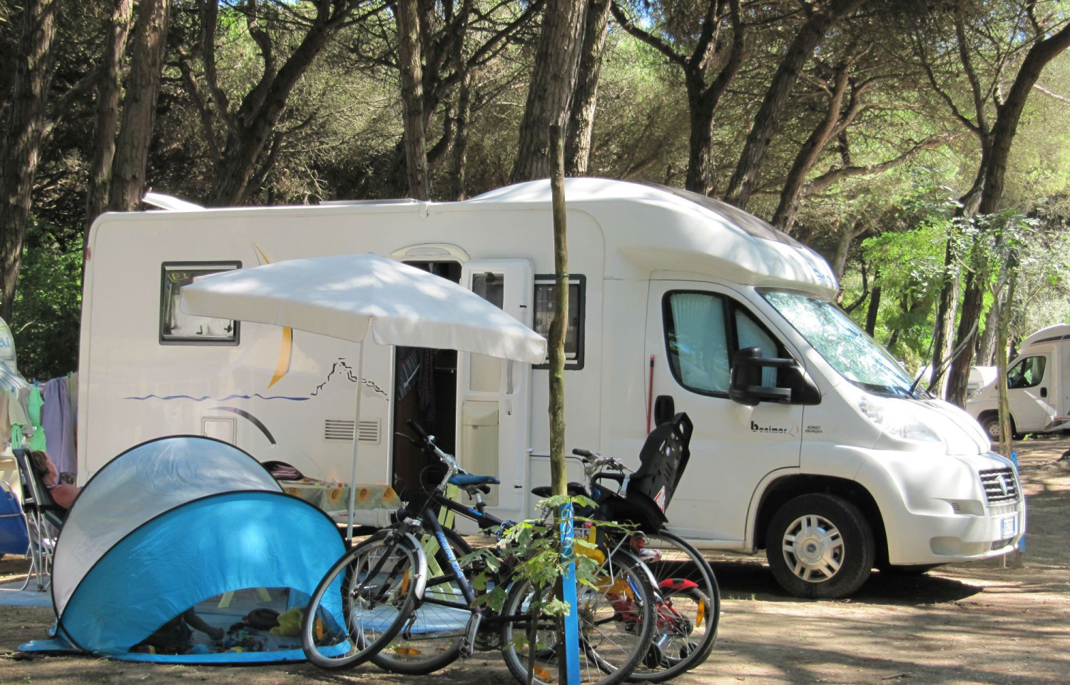 Piomboni Camping Village- CIR 039014-CP-00006 Situato in un parco di 48.000 mq e immerso in una maestosa PINETA SECOLARE oggi riserva naturale il Piomboni Camping Village si trova a 2 km dal centro di Marina di Ravenna ed a soli 8 km da RAVENNA, famosa città d'arte e cultura bizantina, ben collegata da autobus locali.