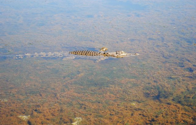 Facciamo una piccola escursione prima del tramonto, arriviamo ad un molo dove siarebbe vietato andare a causa pericolo di coccodrilli saltatori, pronti ad afferrare il malcapitato di turno, ma con molta circospezione lo percorriamo senza notare pericoli imminenti; il luogo è intrigante: lo scorrere lento del fiume, qualche scia di probabili coccodrilli al largo, il canto degli uccelli, la vegetazione tipica delle zone tropicale, ci fanno sentire un po' Indiana Jones!!