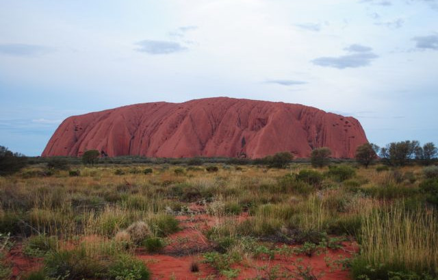 Il mattino successivo lasciamo il camper in un ampio parcheggio e decidiamo di fare il percorso a piedi attorno al monolite, oltre 10 km sotto un sole cocente e quasi senza zone ombrose, ma meritava senz'altro farlo. Da vicino noti ogni avallamento della roccia e le differenze di colorazione dal giallo arancione al rosso vivo, poi grotte, anfratti, e pitture rupestri, mentre alla sera è di un colore ocra rossastro. Queste variazioni pare siano dovute alla composizione del materiale roccioso.