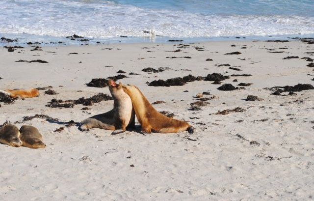 Nell'isola visitiamo le ”Remarquable Rocks” formazioni rocciose di una bellezza e colori impressionanti, una zona con centinaia di foche, molte di queste lontane anche un centinaio di metri dal mare per raggiungere delle aree con vegetazione e qui ci è stata data la possibilità dalla ranger di avvicinarsi a pochi metri, facendo attenzione a non disturbarle troppo. Sono riuscito durante il viaggio sull'isola ad evitare con una pronta sterzata l'investimento di un echidna, una specie di riccio dal lungo naso e pare in via di estinzione.