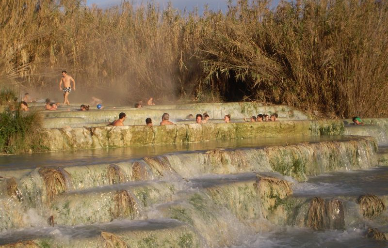 Giunti a Saturnia a tarda sera sostiamo nell’AA “La Quercia” in Via Aurina ( coordinate GPS N42.66741 E 11.50542 , 15€ 24h con elettricita’, Cs , doccia calda a 0,50€ e bus navetta per le cascatelle) proprio a ridosso del paese.