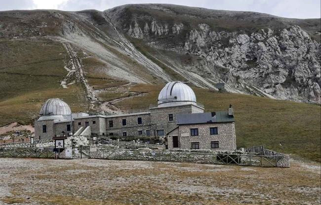 Ci posizioniamo nella sosta per camper e autobus (assenti) dietro il vecchio albergo, storico luogo di prigionia di Mussolini nel ’43.