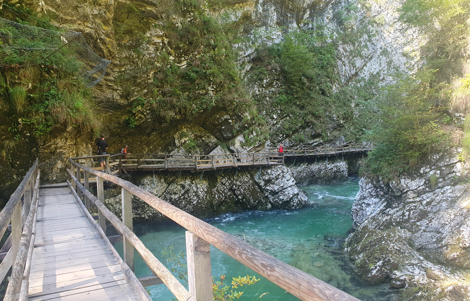 Abbiamo fatto una passeggiata fino a un punto panoramico poco sopra il lago da cui si vede l'isolotto dall'alto (15/20 min a piedi + ritorno), mentre pomeriggio dedicato alla visita delle gole di Vintgar. Dal campeggio con la bici ci abbiamo messo 25/30 minuti, percorso direi fattibile per tutti (qualche salita, ma nulla vieta di scendere e spingere la bici per qualche metro); si arriva fino all'inizio del percorso da cui si parte a piedi per giungere alla gola, occorre pagare un biglietto di ingresso di €10 a testa e si parte per questa breve camminata di circa 1,5km su una passerella in legno costruita sopra il fiume con acqua verde smeraldo. La cascata alla fine è bella ma personalmente ho apprezzato di più il percorso; si rientra poi per un altro sentiero nel bosco.