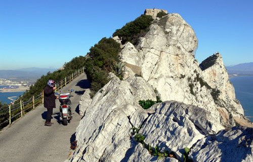 Parcheggiamo nel grandissimo, squallido e non proprio rassicurante parcheggio della Linea de la Concepciòn, tra qualche camper e molti semirimorchi, subito fuori del varco doganale di Gibilterra. E’ ormai sera, ma tiriamo fuori lo scooter e facciamo una prima veloce ricognizione della cittadina di Gibilterra: niente di interessante, solo palazzi moderni e un traffico assurdo. In particolare i motorini vengono guidati in un modo che farebbe morire di invidia un ragazzino napoletano.