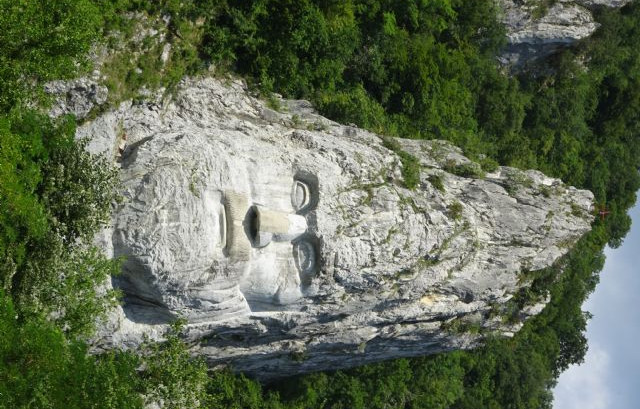 Decebalo (condottiero dacico che per anni ha tenuto in scacco le truppe dell’impero romano), mentre leggermente a monte sulla costa serba è posta la