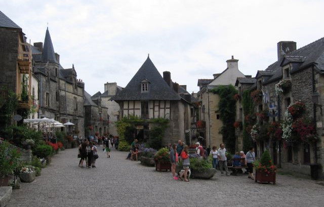 Martedì 11 Lasciamo il golfo e partiamo per la visita di ben 5 borghi medioevali,…ma alla fine riusciamo a visitarne solamente 3: Guerande promontorio con borghetto medioevale carinissimo, sono le 09.00 del mattino ed i negozi ancora chiusi. Guardiamo gli orari e…ah però: aprono dalle 10.00 alle 12.30 e dalle 16.00 alle 19.00 – anche in pieno agosto con i turisti i negozi chiudono nella pausa pranzo ed anche la sera. I ristoranti non amano restare aperti fino a tardi e quindi dopo cena i paesi, e le città sono deserti; questo è un po’ tristino in estate. Proseguiamo per La Roche du Bernard borghetto medioevale arroccato su una piccola montagnetta con porticciolo e piazzetta molto carini. Trovato parcheggio in pieno centro. Si prosegue per Roche Forte en terra, sicuramente dei tre il più suggestivo, colmo di fiori, solare,…mi gusto un bombolone alla nutella grossissimo, visita del parco del castello (il castello è chiuso), casette molto particolari, piazzetta con pozzo centrale, molto molto caratteristico.