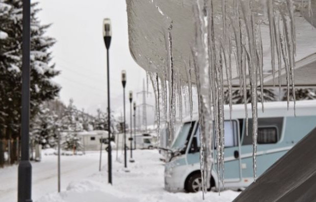 Adesso con la neve gli spazi sono abbondanti per il solo camper, e non hanno nulla da invidiare a tante aree italiane. Da notare che siamo l’unico camper italiano di tutto il campeggio.