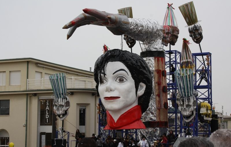 Davanti a noi passano tutti i personaggi più spiritosi che si possano immaginare, dai Puffi a Capitan Uncino, a Spongebob, ad improbabili Alice nel paese delle meraviglie accompagnate dal Cappellaio Matto, bande musicali e aggraziatissime majorettes. Ma lo spettacolo più pittoresco è quello dei grandiosi carri: su tutti campeggia quello di Burlamacco e Ondina che rappresentano “Viareggio nel cuore”, quindi quello dell’Allegria, l’ “ Alfabeto apocalittico”, l’ “Amore rubato”, “Silvio mani di forbice”, “Thriller party”, un tributo a Michael Jackson, accompagnato dalle sue entusiasmanti musiche, alle quali non abbiamo potuto trattenerci dal partecipare con goffi balli scatenati, quindi l’inquietante, ma forse profetica, “Nave Carroccio anno 2046”, l’omaggio alla Cina nella “Danza del Drago”, i bellissimi cigni del carro dedicato al rifiuto del razzismo “Una sola madre: la Terra”, lo spiritosissimo carro “Nel paese delle meraviglie”, naturalmente l’Italia, “Notre Dame l’Italie”, “Economica follia”, “Scacciapensieri, “Machinarium” ed altri.