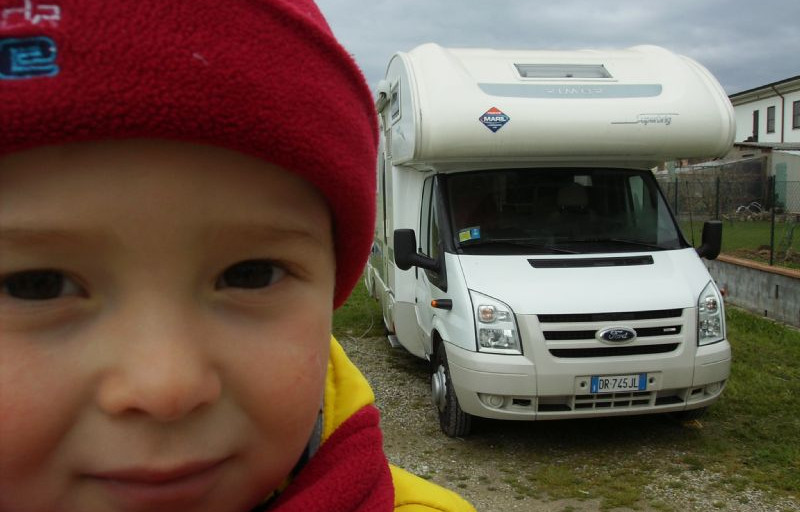 FUORI E' IL DILUVIO PER CUI SFRUTTIAMO IL CAMPER PER RIPOSARCI SUL POSTO E PER CAMBIARE IL PICCOLO. SOLO A SERA RIENTRIAMO ALL'AREA ATTREZZATA "EUROSOSTA".