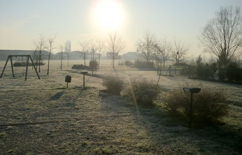 Ci svegliamo in mezzo ai campi gelati, in un silenzio incredibile. Alle 10.00 siamo in pista (con calma..), destinazione Porto Garibaldi a fare un po’ di spesa di pesce da portare a casa. Parcheggiamo al porto, anzi sul molo. Dopo una piacevole passeggiata e un po’ di acquisti (compreso pesce fritto appena fatto da mangiare a pranzo) vorremmo andare nel parcheggio camper che abbiamo trovato sui vari forum di internet. Purtroppo, pur avendo percorso due volte tutto il lungomare, troviamo solo cartelli di divieto di sosta ai camper. Decidiamo di tornare al porto e pranzare lì.