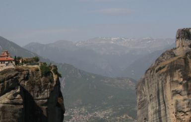 Nella notte ha un po’ piovuto ed il camper è ricoperto completamente da una patina di sabbia rosa… I nostri amici sono partiti di mattina presto per il rientro in Italia e noi andiamo a visitare l’isola. Percorsi circa 2Km verso il centro cittadino, ci imbarchiamo con 3 euro a testa ed in meno di 15 min. siamo a destinazione. L’isola è tutta racchiusa nel piccolo borgo votato al turismo e raccolta fra il museo di Ali Pasha, il monastero e la piccola chiesa greco ortodossa. Restiamo a pranzo sull’isola e con 27 euro assaggiamo le prime specialità del posto. Al rientro, ci fermiamo a visitare l’interno delle mura di Joannina. Poi, partenza per le Meteore. Un centinaio di Km. Ci separano dal camping Kastraki (N.39°42’38” E.21°36’57”) 17 euro, con piccola piscina e servizi accettabili. Arriviamo nel tardo pomeriggio e dopo esserci sistemati, facciamo subito amicizia con Roberto e Tiziana, arrivati anche loro da poco con il loro Arca, ed intenzionati a passare qualche mese fra la Grecia e la Turchia. Serata trascorsa in loro compagnia con la proposizione di passare qualche giorno di vacanza assieme.